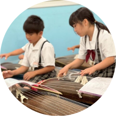 3~6年を必須とし、(公社)当道音楽会中匂当が講師として対応します。また、備品として35張もの琴を備えており、授業の中で全員が琴に向かい、一斉に演奏することができます。これは、他校にはないメリットです。