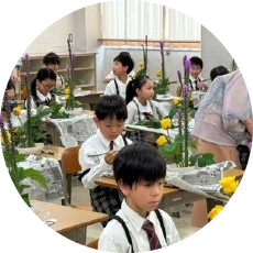 3・4年を必須とし、小原流一級家元教授を初めとする講師3名で丁寧に対応します。日本の生け花は『空間』を入れることによって『風』を感じさせることが大切です。命を慈しむ心を育み、正解のない自由な表現を通して、お子様の豊かな感性や集中力が自然と磨かれます。