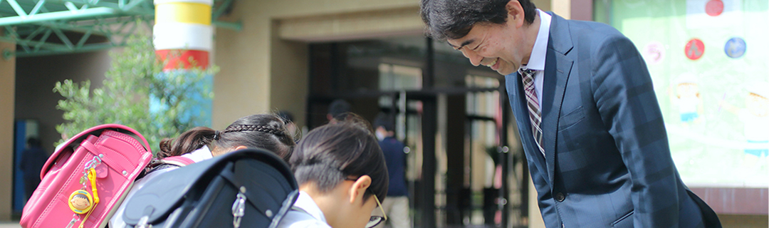 校長が掲げた「こんにちは 笑顔の連鎖 幸せの連鎖」に、児童会役員や4年生以上の学級委員の子どもたちが呼応し、虹の階段前で「校内あいさつ運動」をしています。夏の日差しが照りつける中でも、冬の寒風が吹き付ける中でも、子どもたちの元気な「おはようございます」という声が1日の始まりを明るくしてくれます。