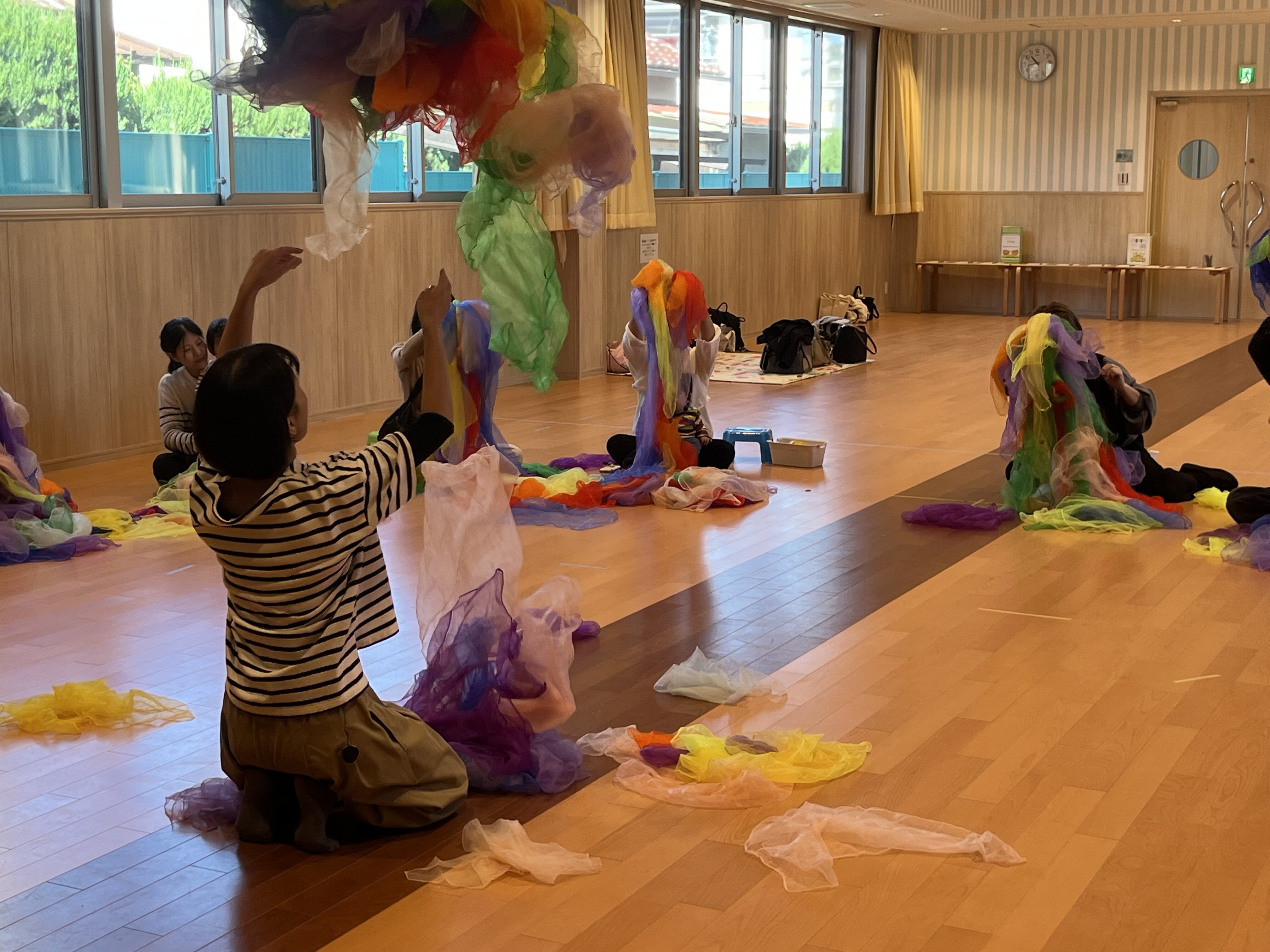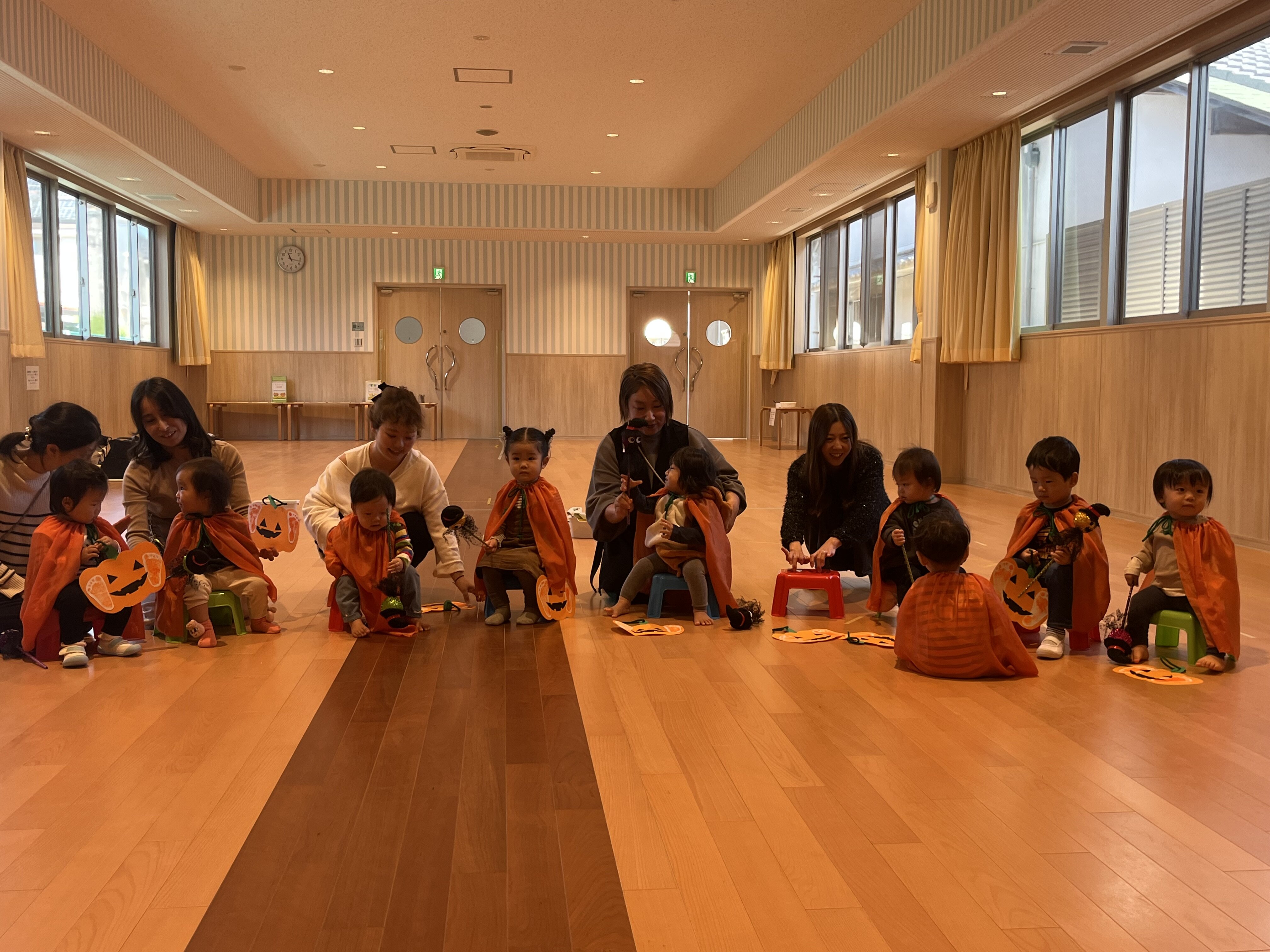 りしょうキッズだより ☆第9回ひよこ教室☆ 10月23日(木)はにこにこ教室の先生による第9回目のひよこ教室がありました★ マラカスやタンバリンを使ってリズム遊びをしたり♪ カラフルなシフォンや大きなバルーンでも遊びました!! 今回はストローさしもしました( ^ω^ ) 足のスタンプでかぼちゃの製作もしました♪ 最後にはかぼちゃのマントを巻いて、可愛いかぼちゃに大変身★ ご参加いただいた皆様、ありがとうございました! りしょうキッズだより一覧へ
