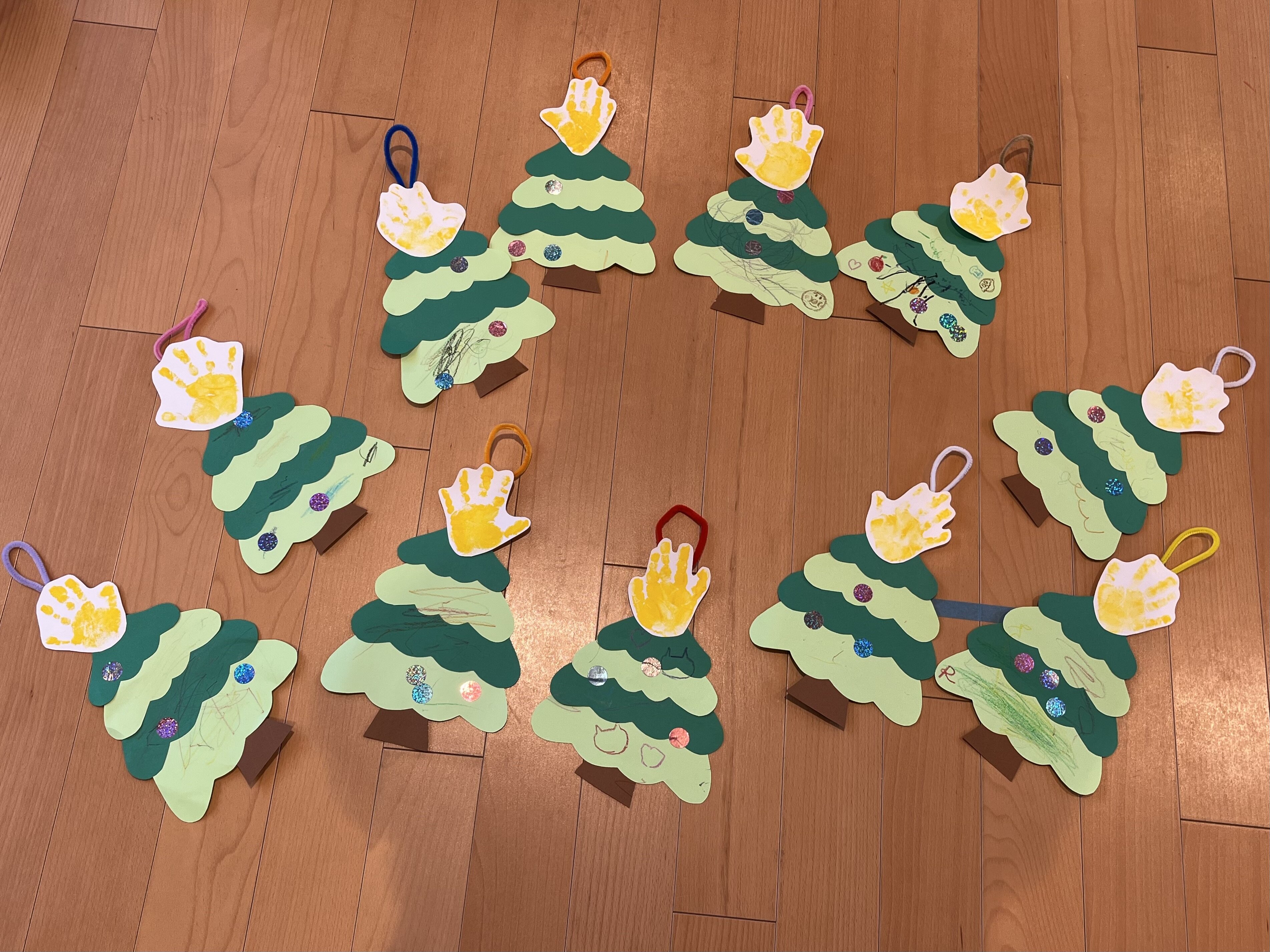 手形スタンプをつかって、クリスマスツリーの製作もしました★
