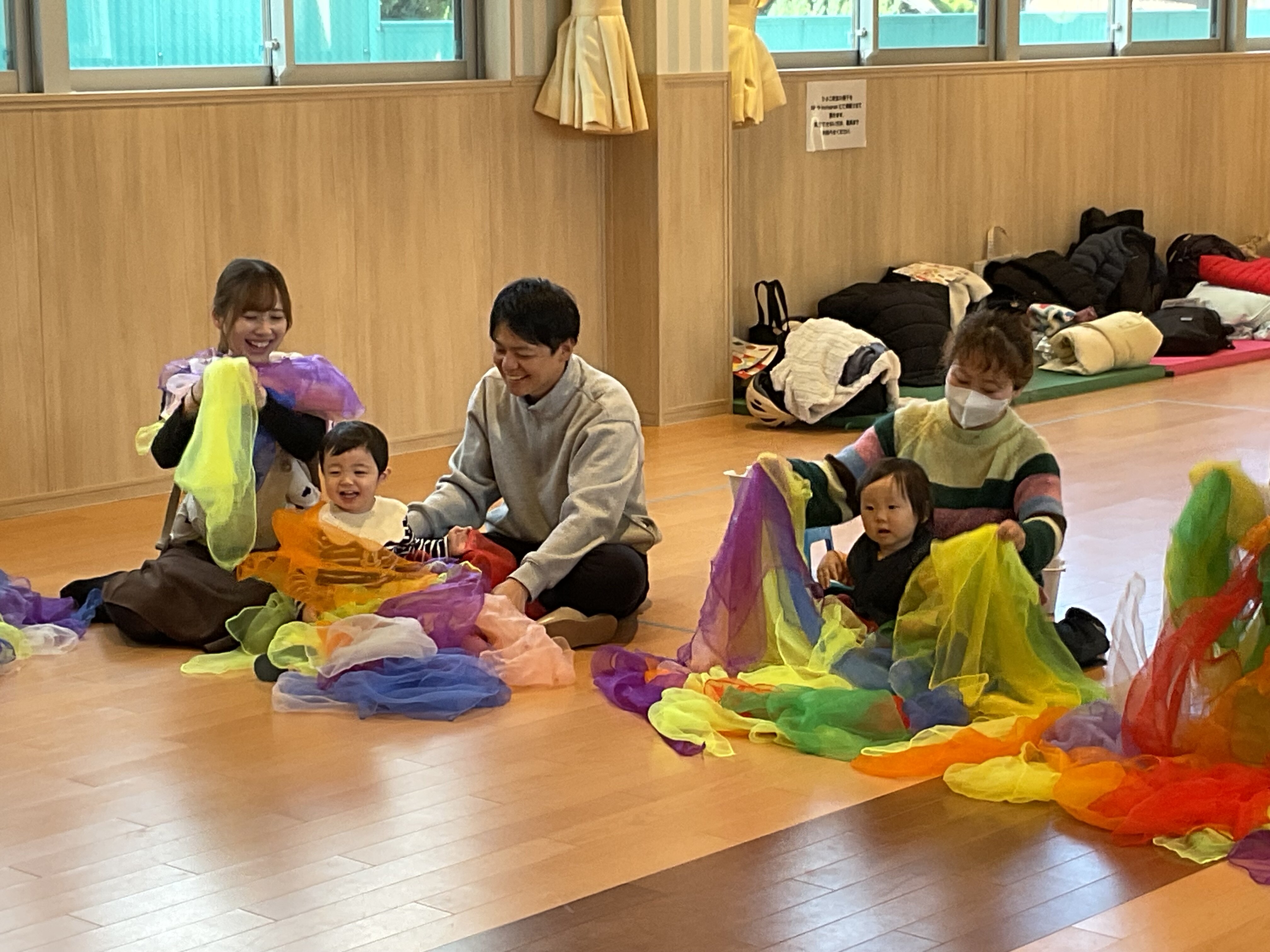 カラフルなシフォンをふわぁ〜っと飛ばしたり、大きなバルーンで遊んだり♪