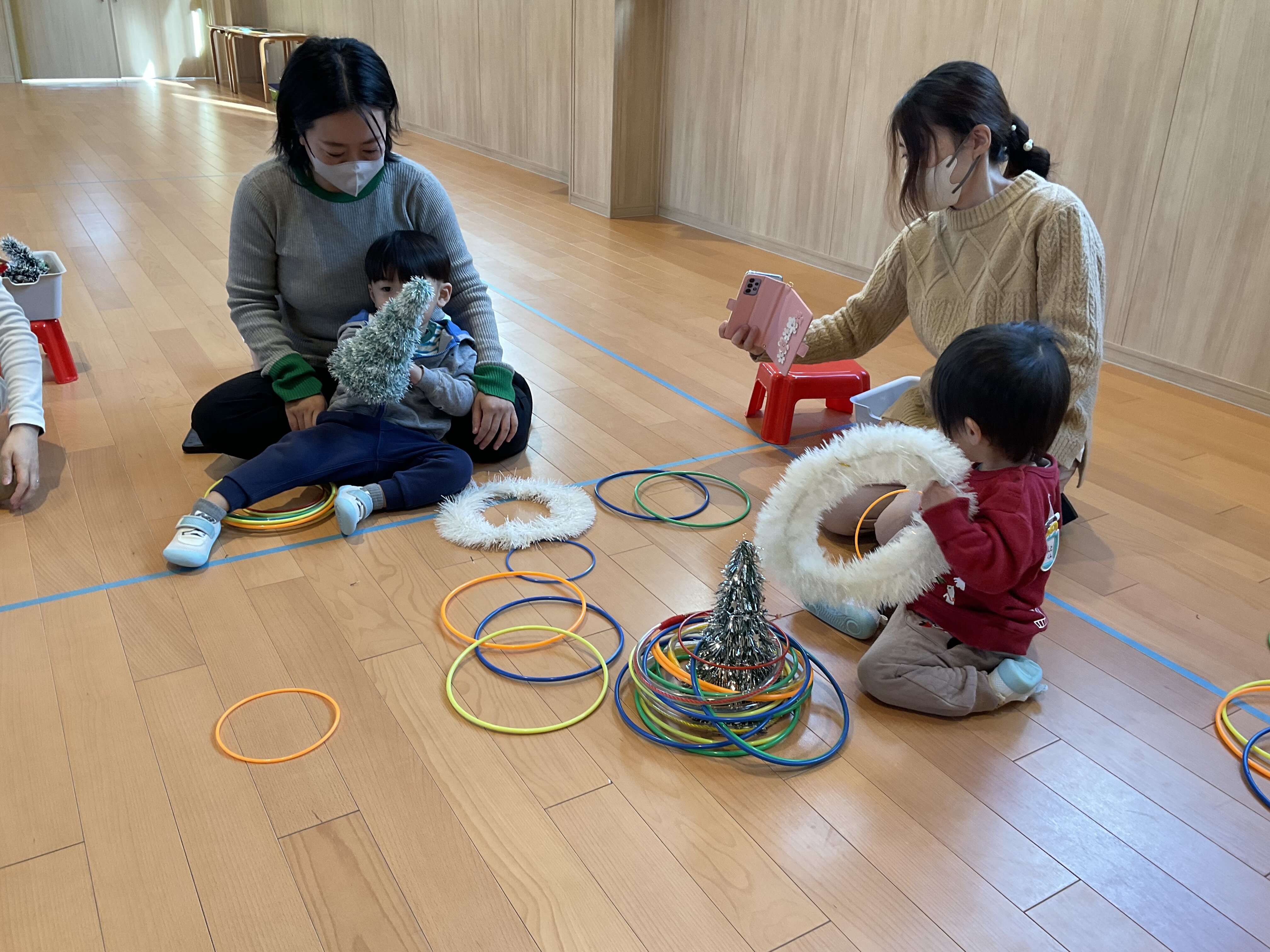 今回はクリスマスリースの鈴を音楽に合わせて鳴らしたり、クリスマスツリーのわなげ遊びもありました!!