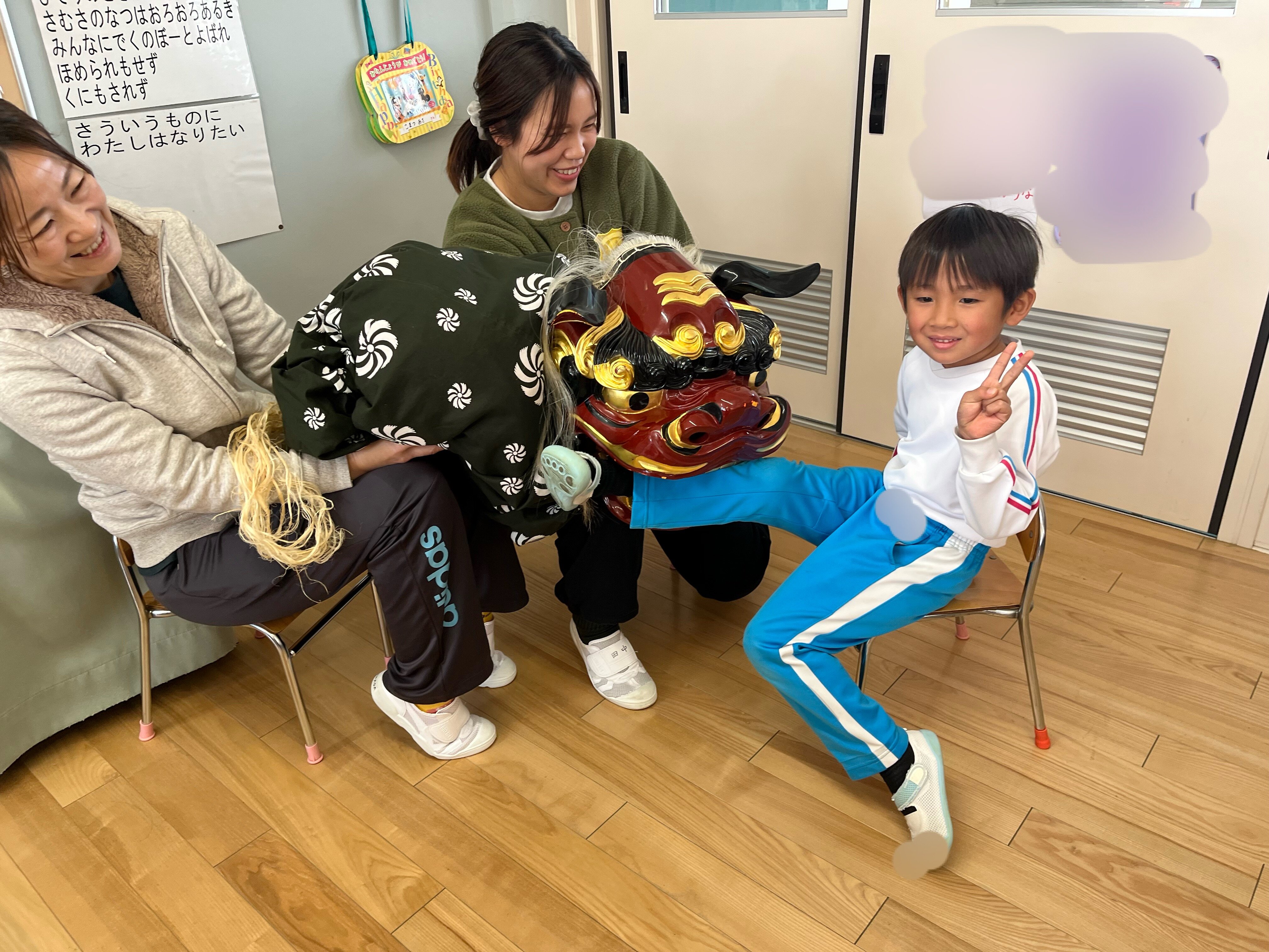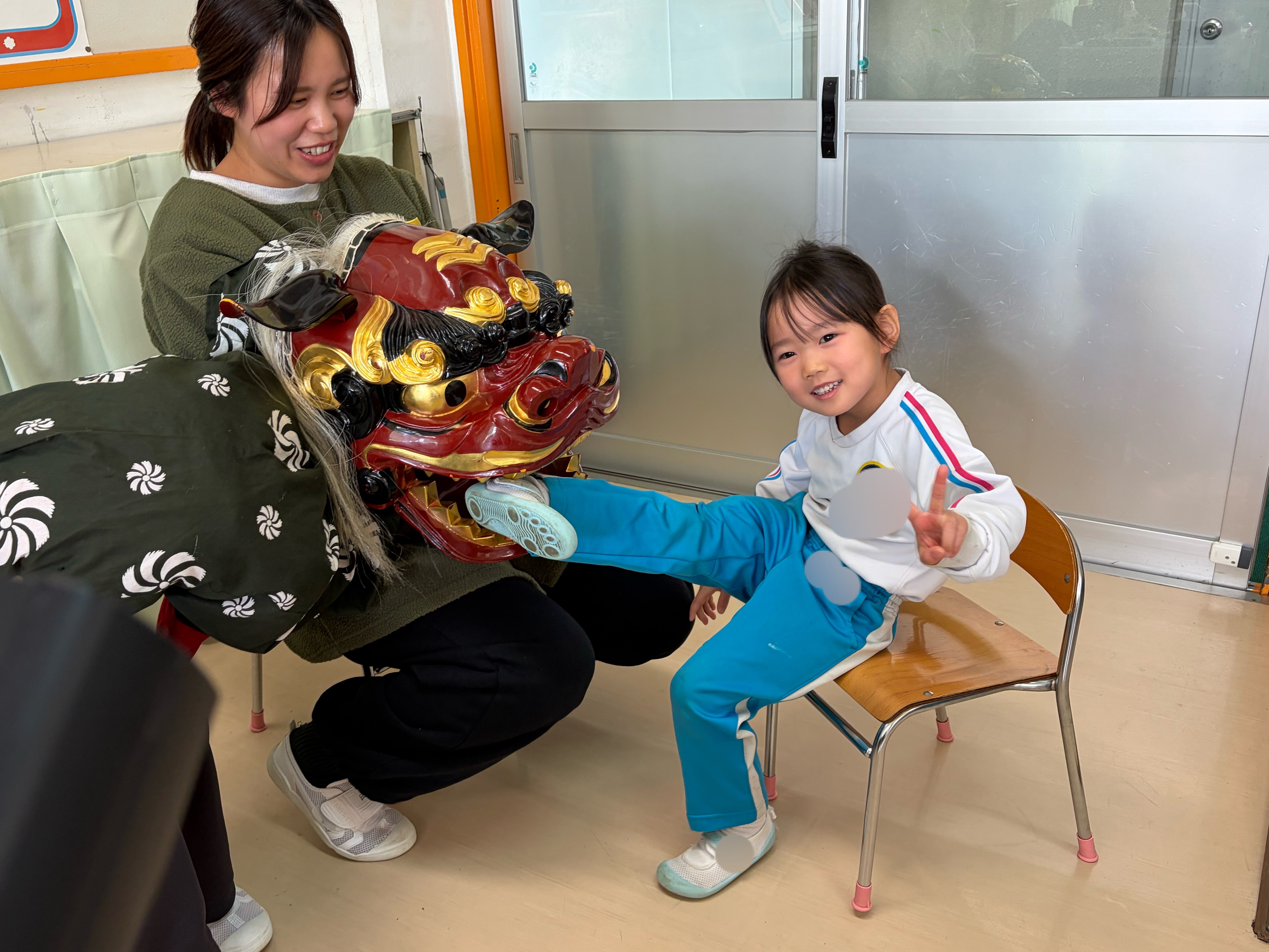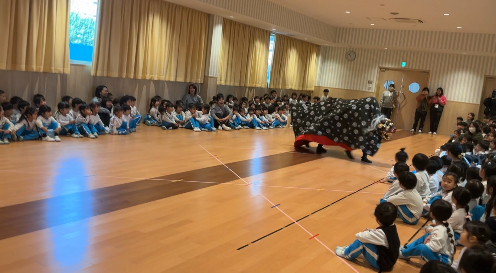 りしょうキッズだより ☆1/9 獅子踊り☆ 1/9は幼稚園に獅子舞が遊びに来てくれました☆ みんなでにじいろホールに集まって獅子踊りを見学♪ 大きな獅子舞に驚いて泣いてしまうお友だちもいましたが 「かっこいい!すごーい!」と興味津々な様子の子どもたちでした☆ お部屋に帰ってからは それぞれ願いを込めて好きな場所を獅子舞さんに噛んでもらいました! みんなの願いが叶いますように☆ りしょうキッズだより一覧へ