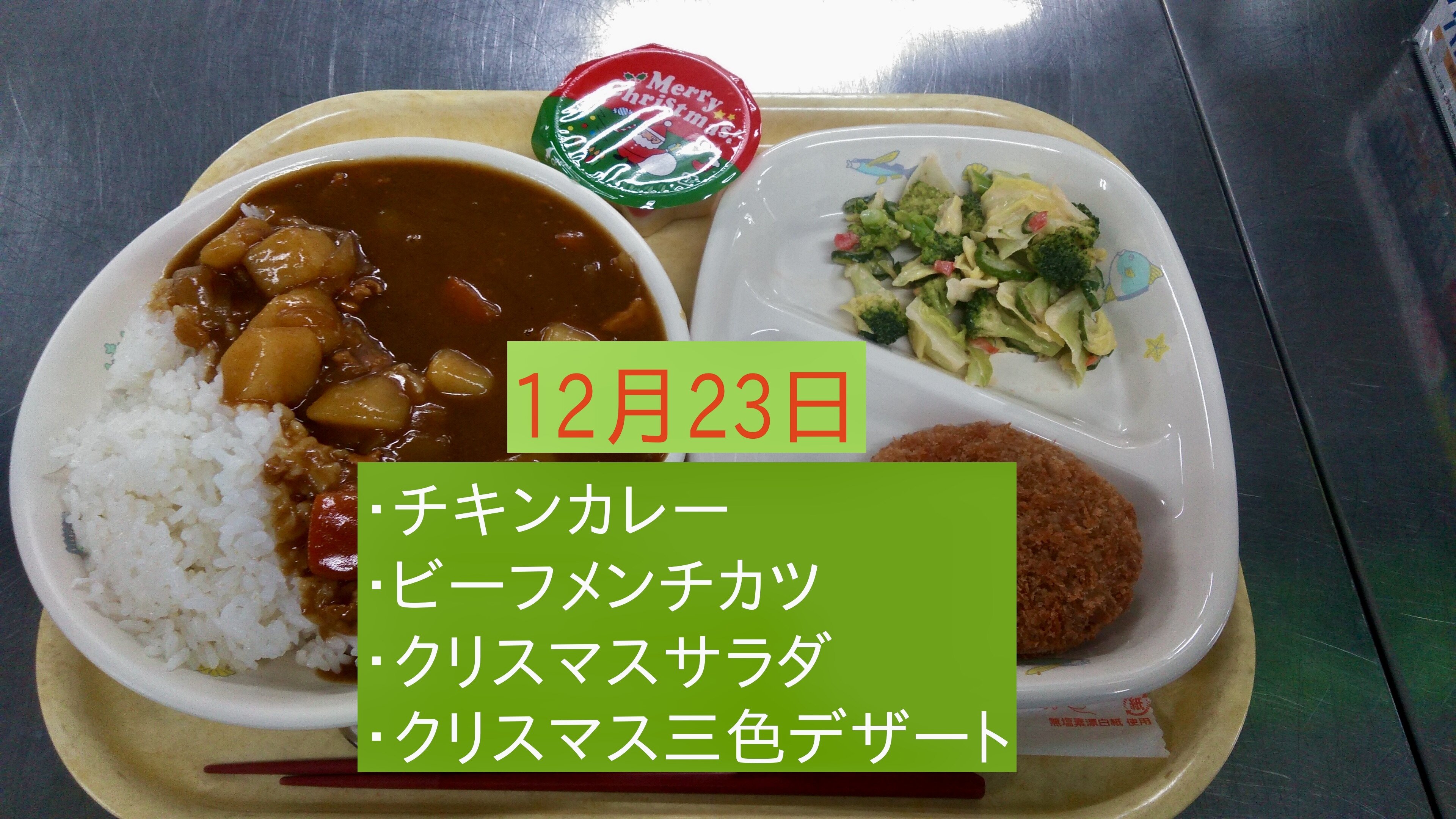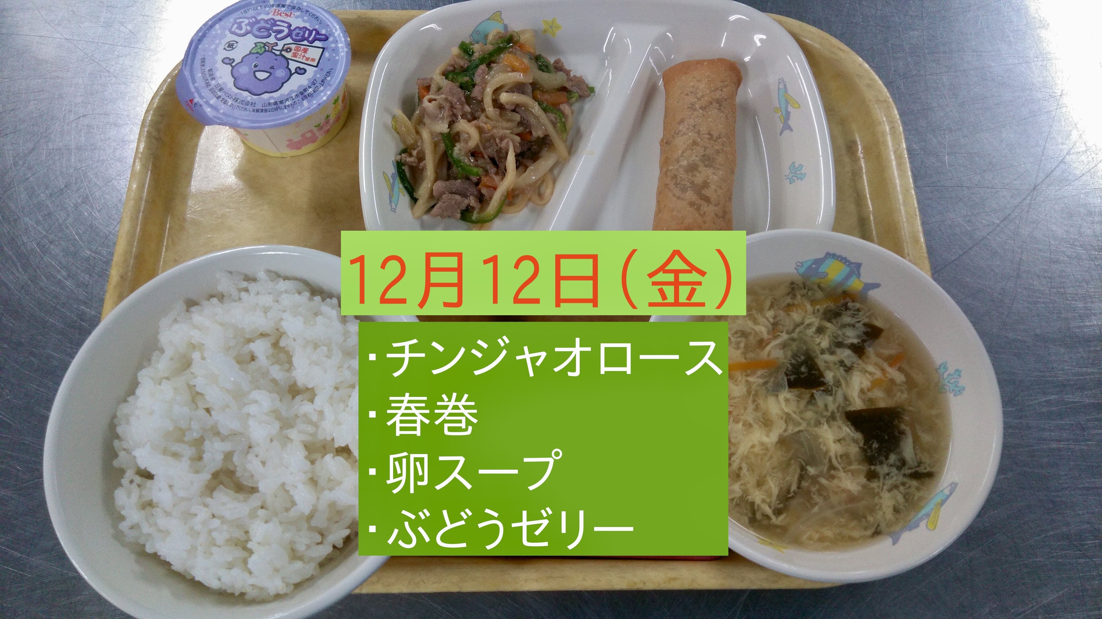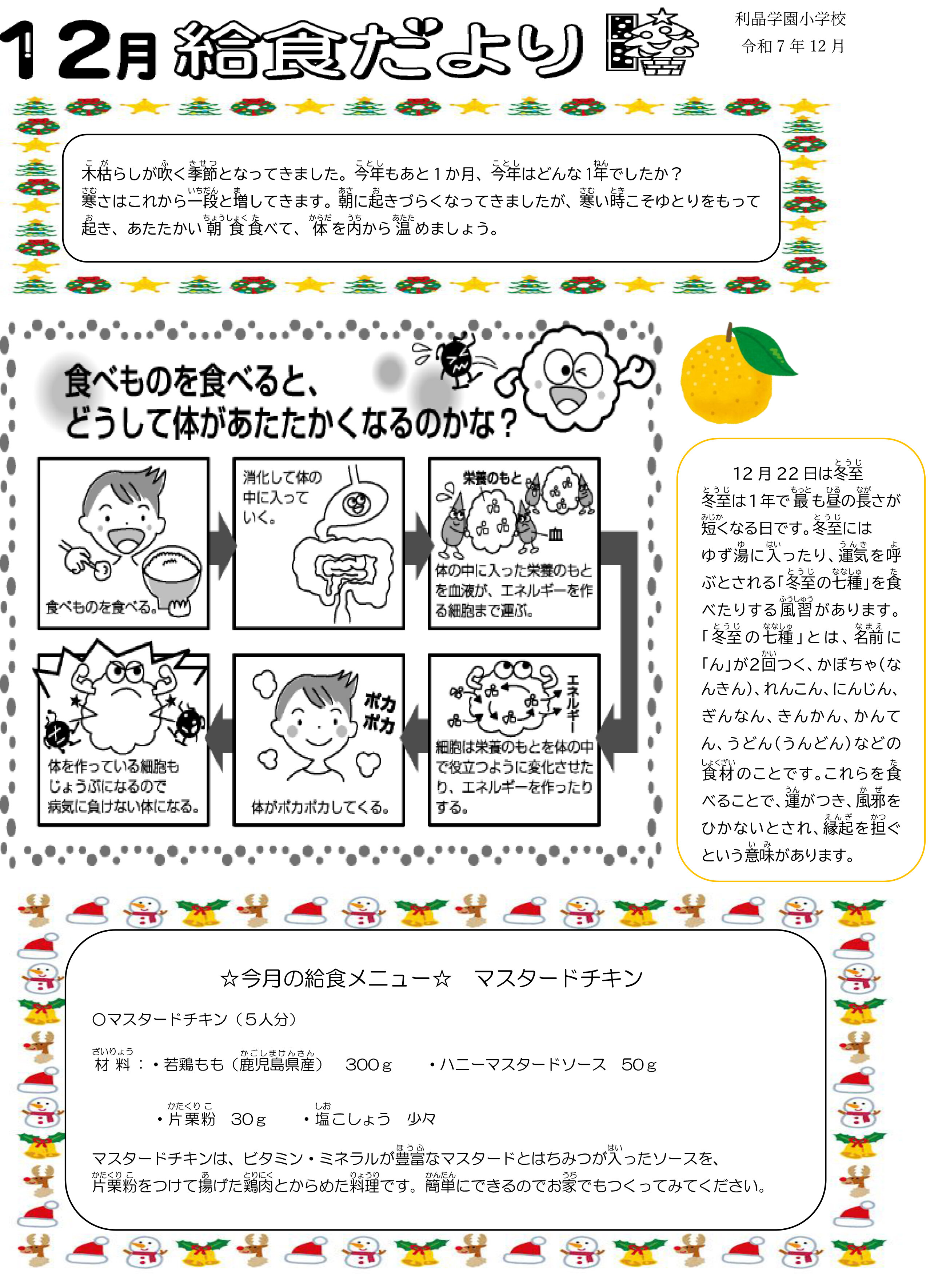 2025/12/23 全学年 全て 12月の給食<12月8日〜23日> 2学期も美味しい給食を作ってくださってありがとうございました! 2学期も毎日、栄養満点で美味しい給食をありがとうございました。 3学期もよろしくお願いします。