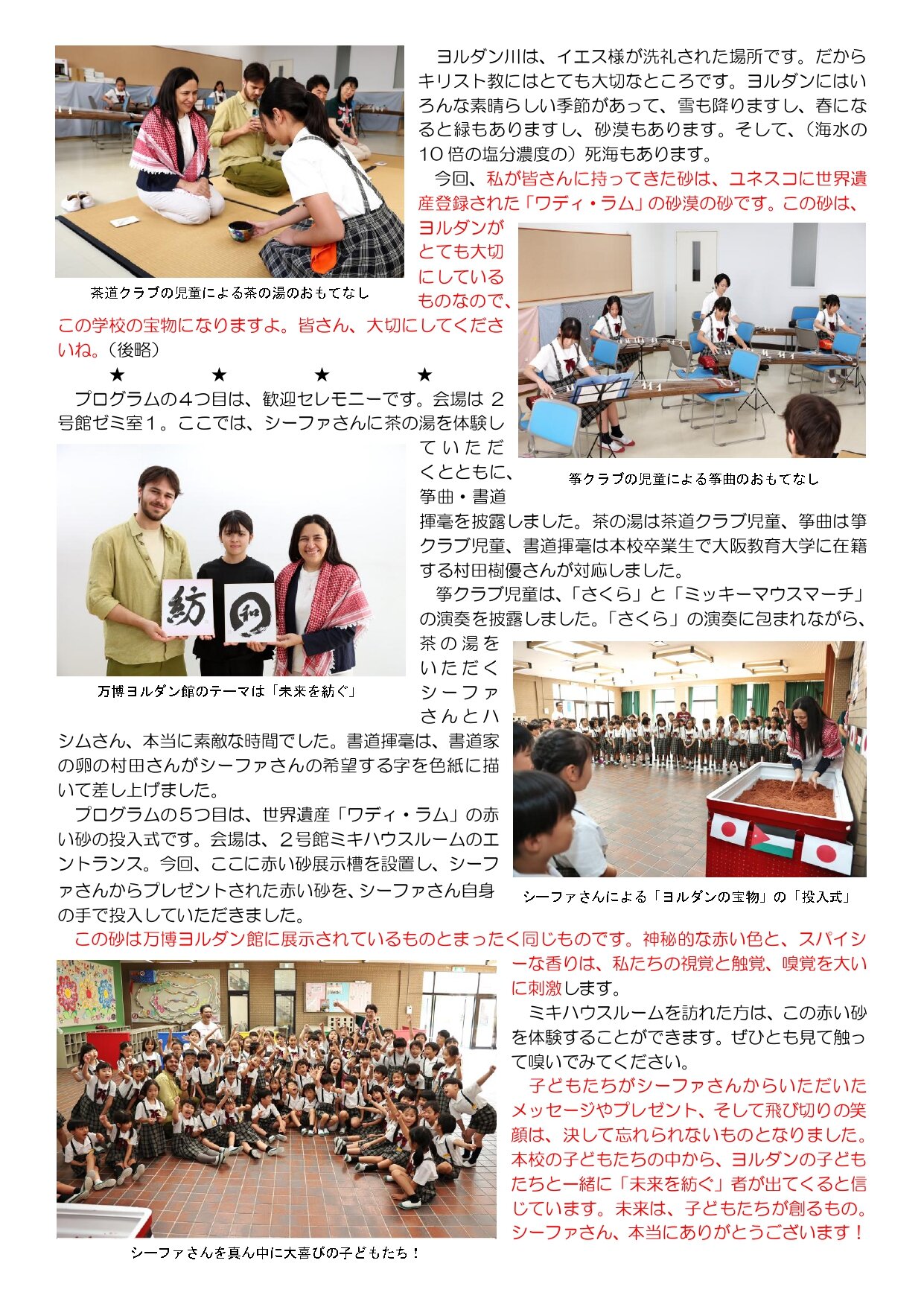 利晶小だより 26号 『万博ヨルダンプロジェクト、シーファさんのお人柄に心奪われまし②』