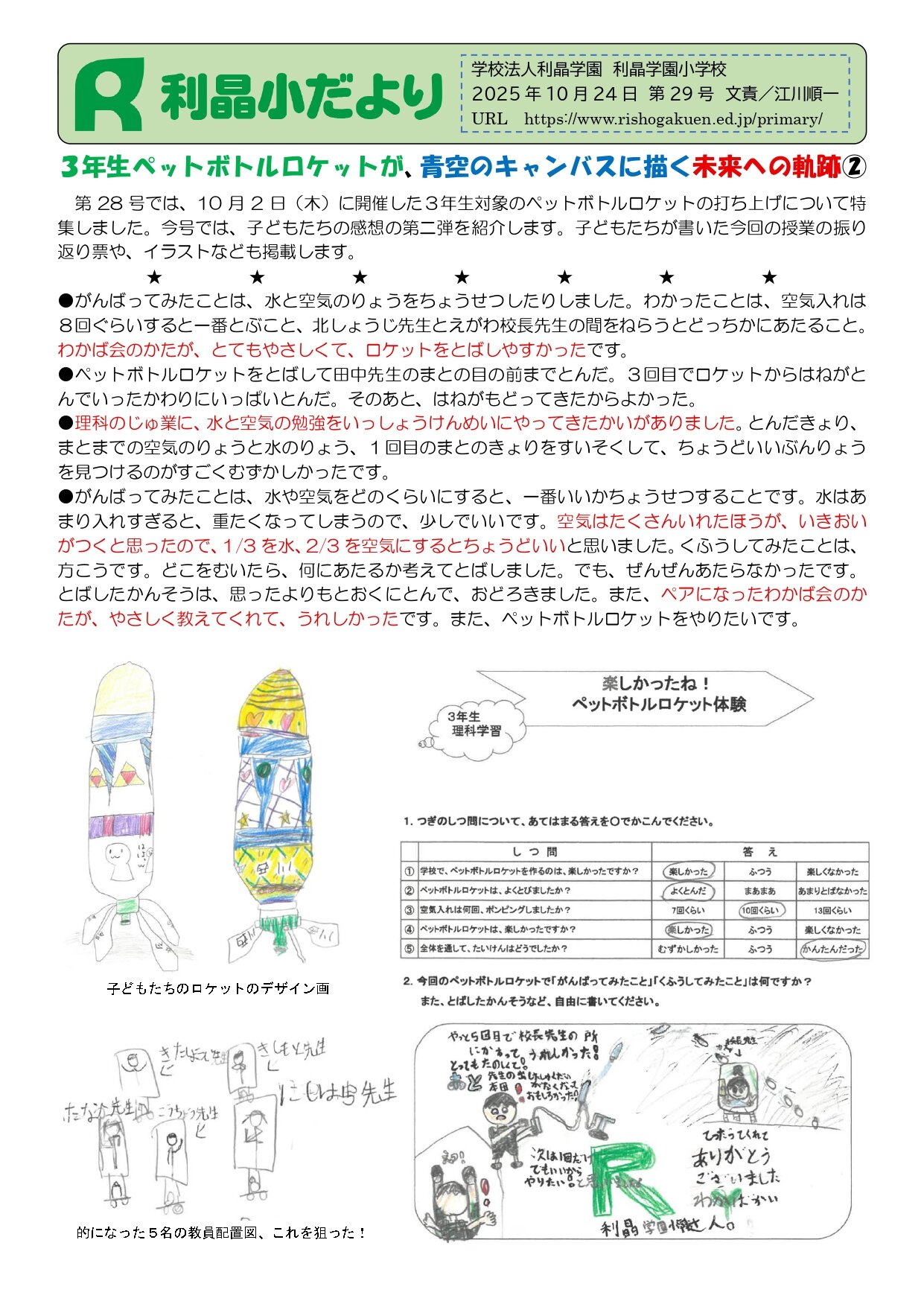 利晶小だより 28号 『3年生ペットボトルロケットが、青空のキャンパスに描く未来への軌跡②』