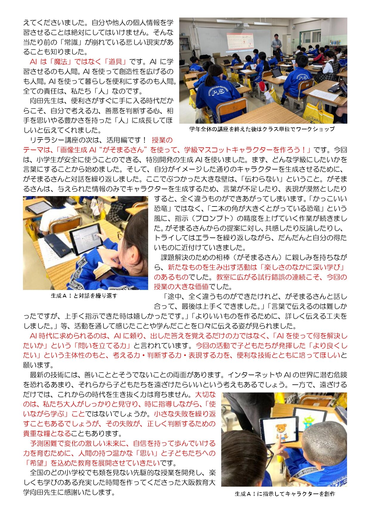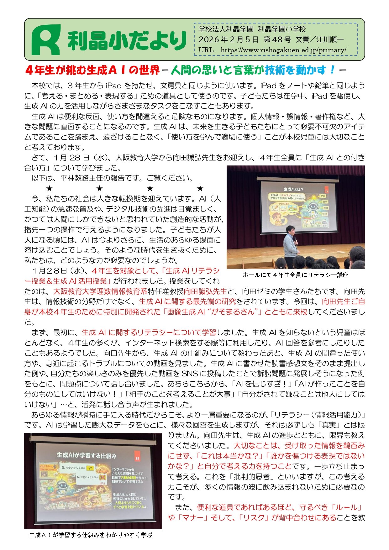 利晶小だより 48号 『4年生が挑む生成AIの世界ー人間の思いと言葉が技術を動かす!ー』