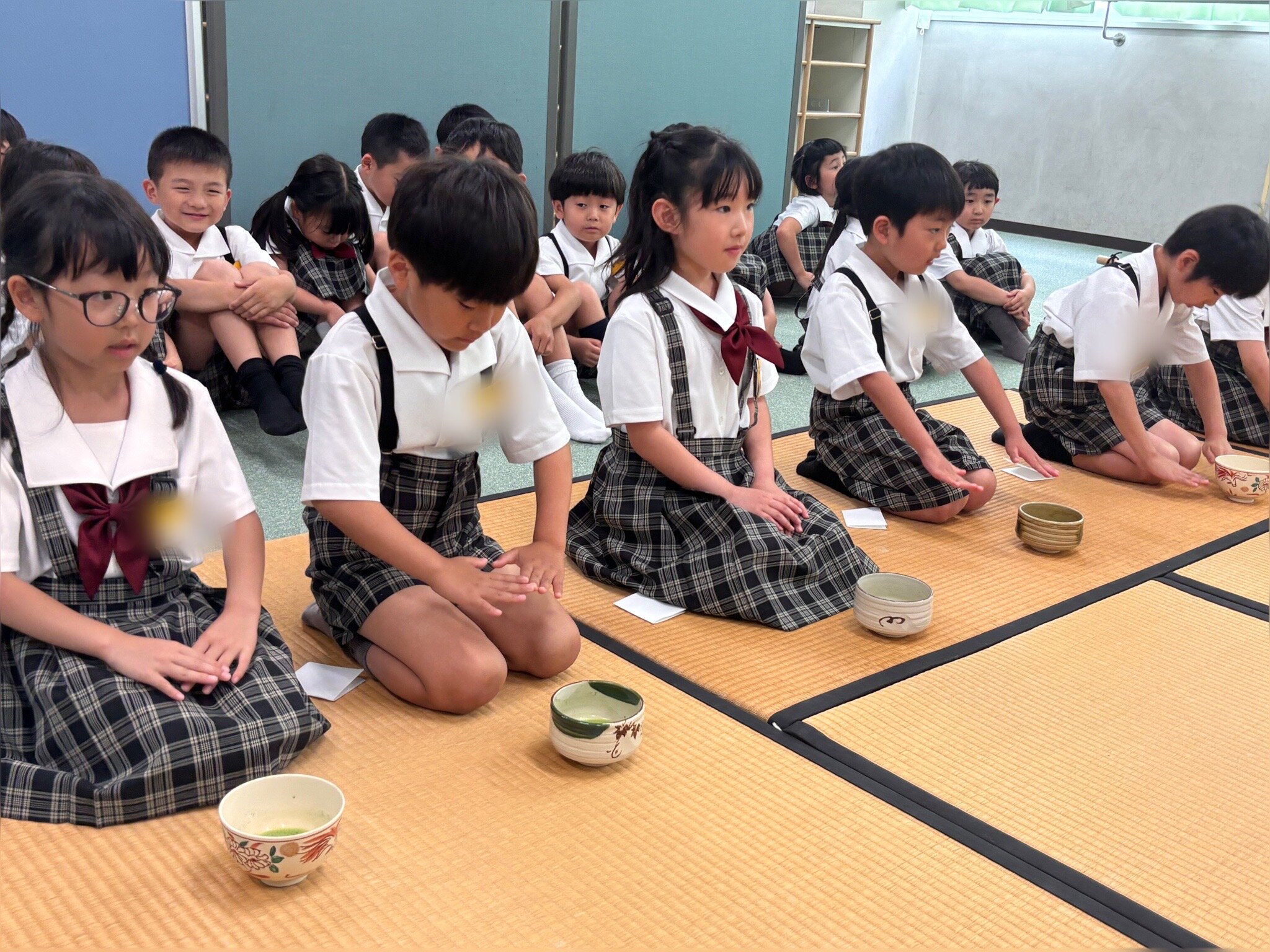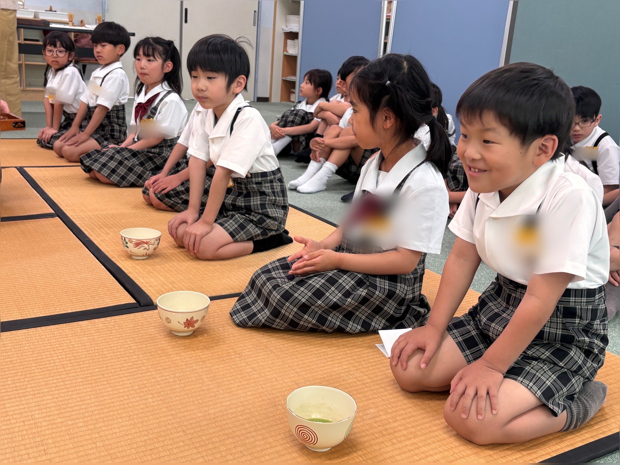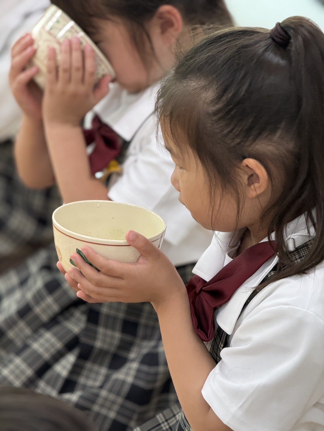 初めて飲むお茶は少し苦いと感じる子どももいましたが、教わったことを身につけようと取り組んでいました。