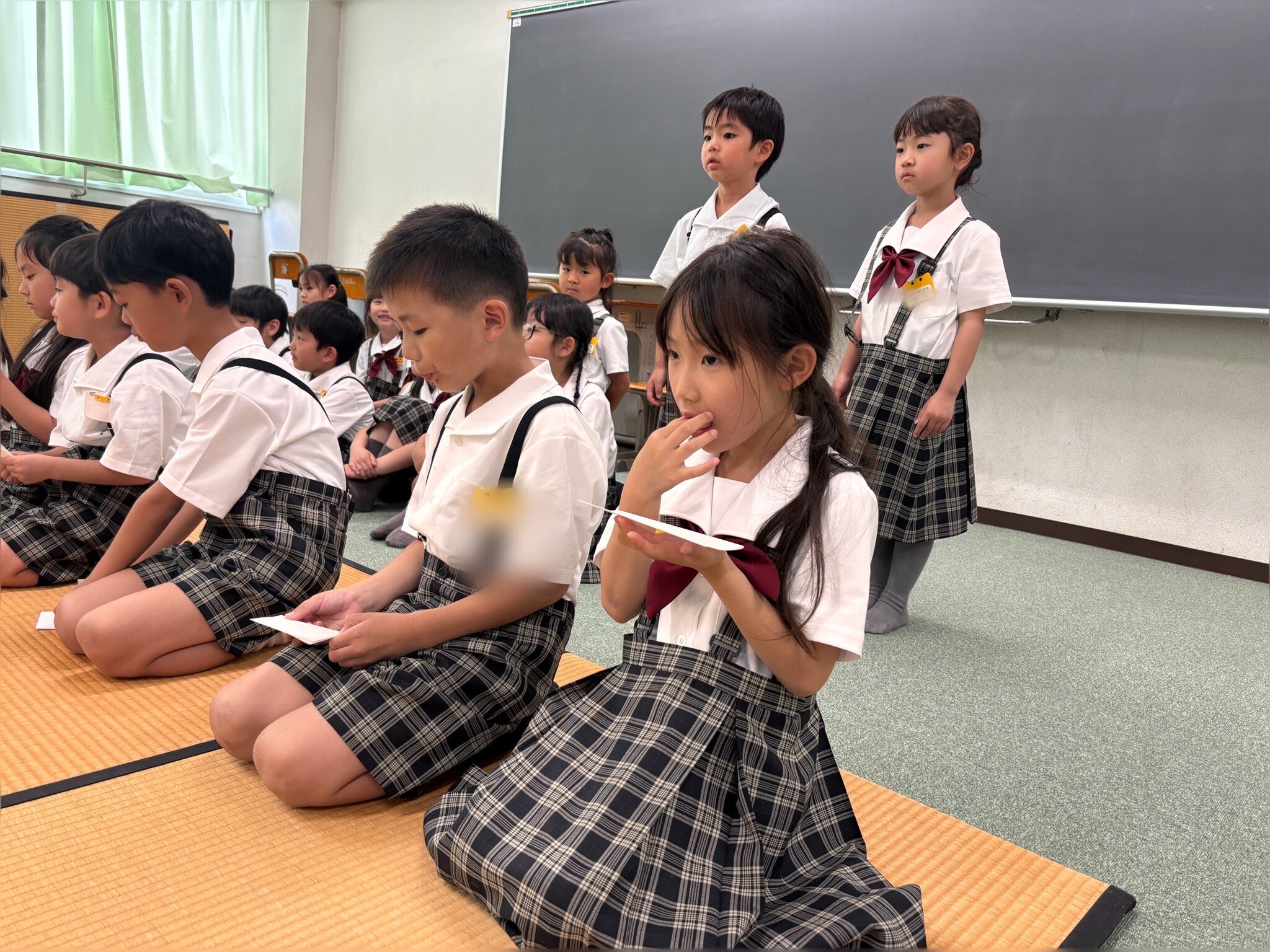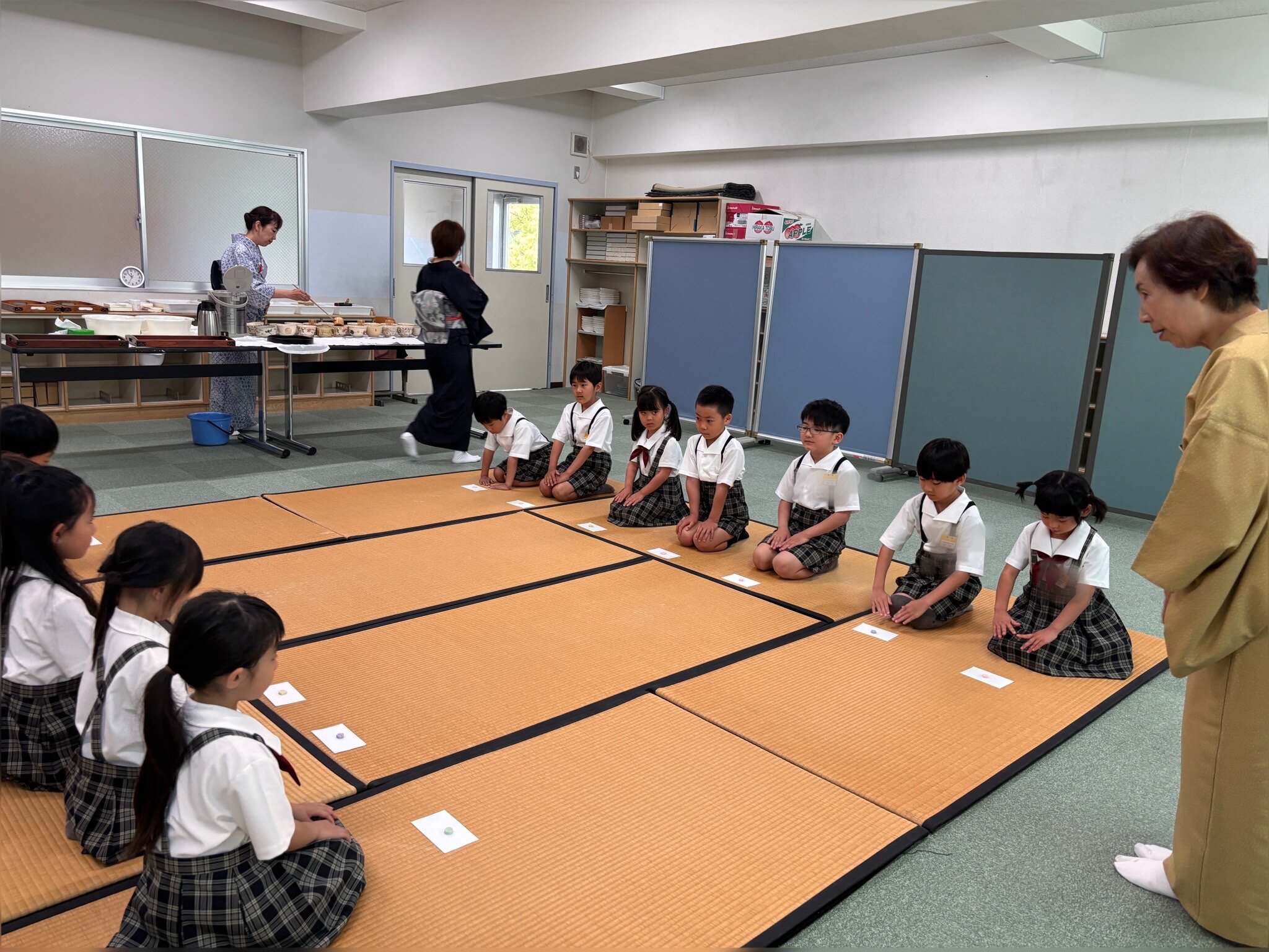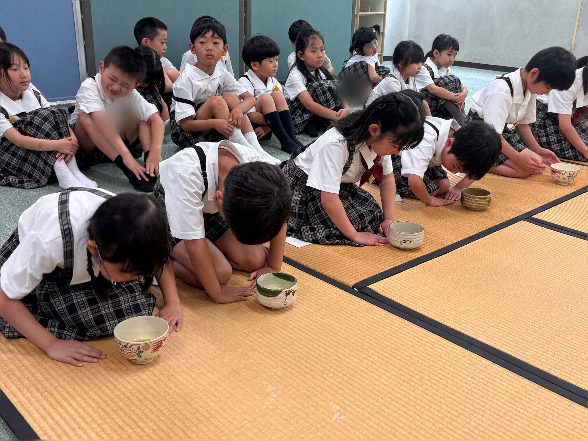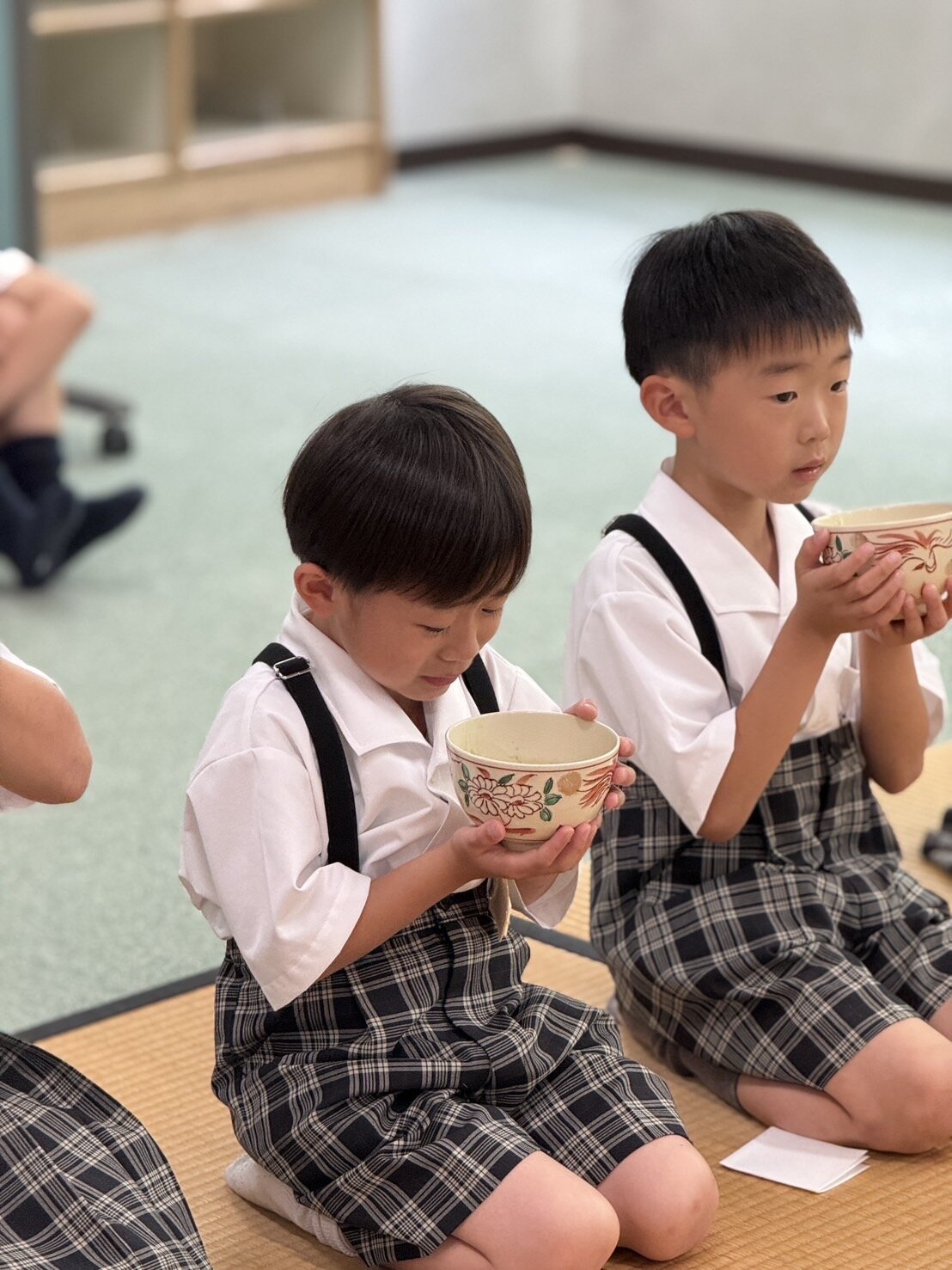 初めて飲むお茶は少し苦いと感じる子どももいましたが、教わったことを身につけようと取り組んでいました。