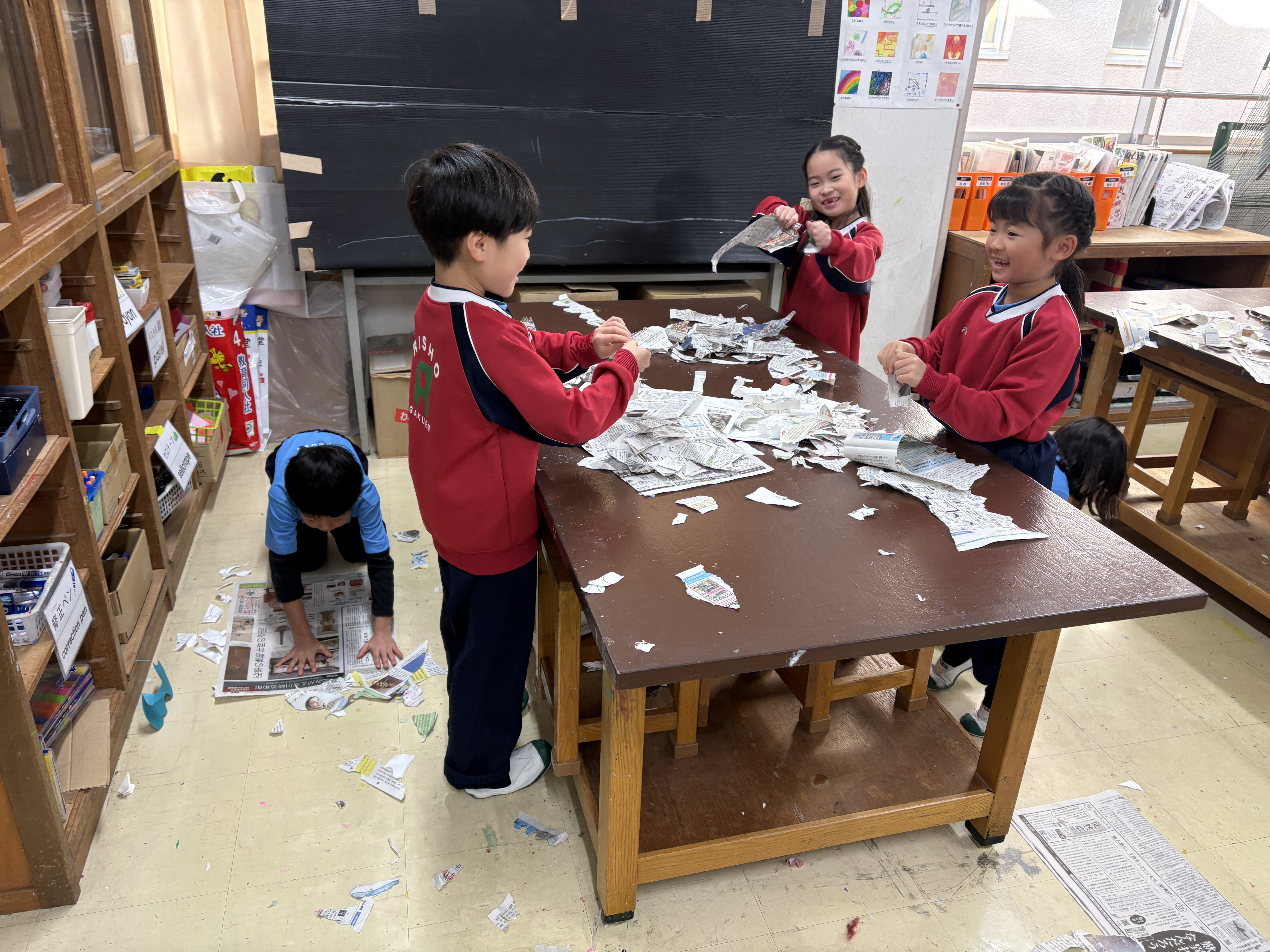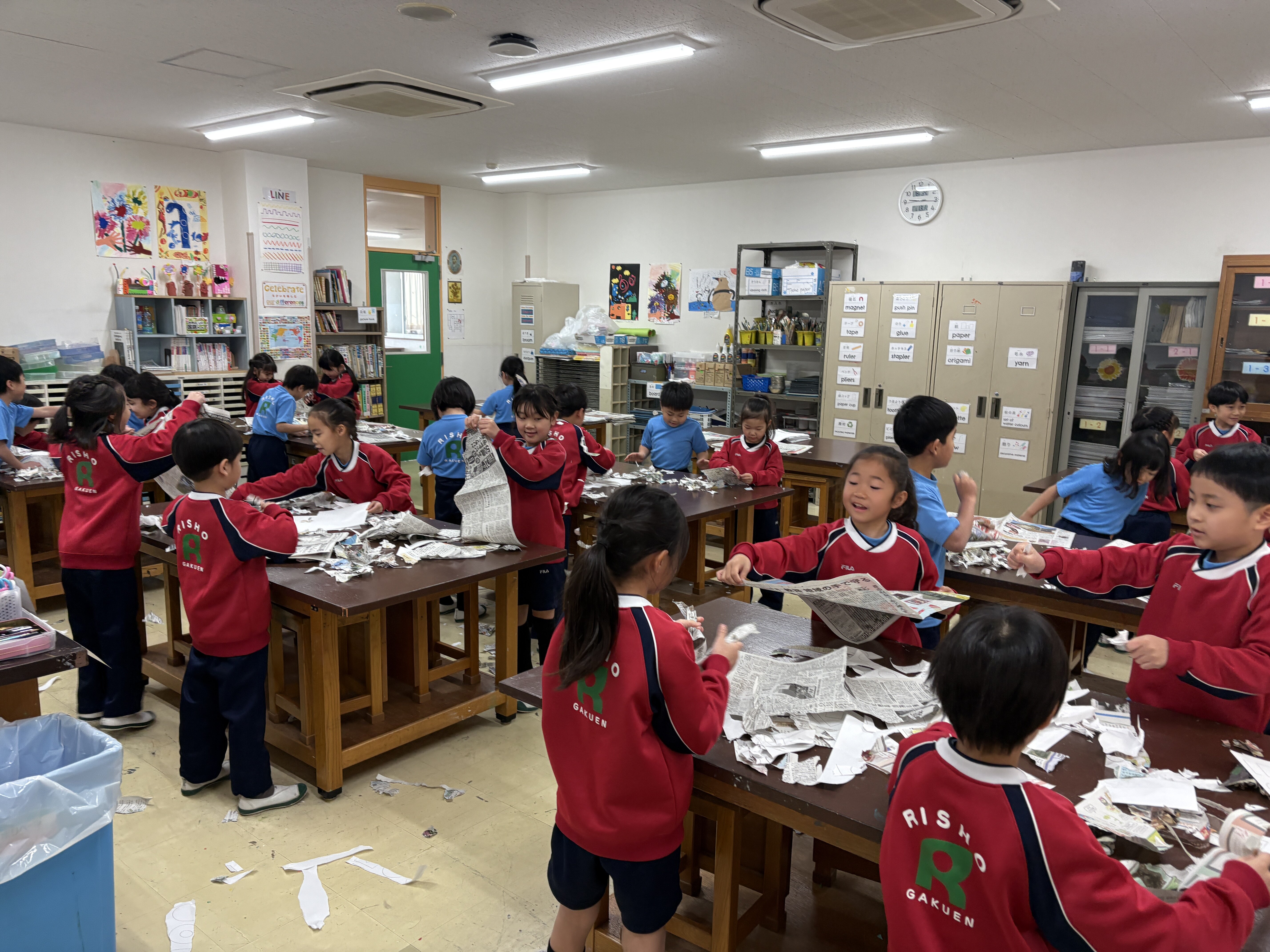 まずは新聞紙で「やぶる」練習をし、五感を使ってビリビリ遊びを楽しみました。