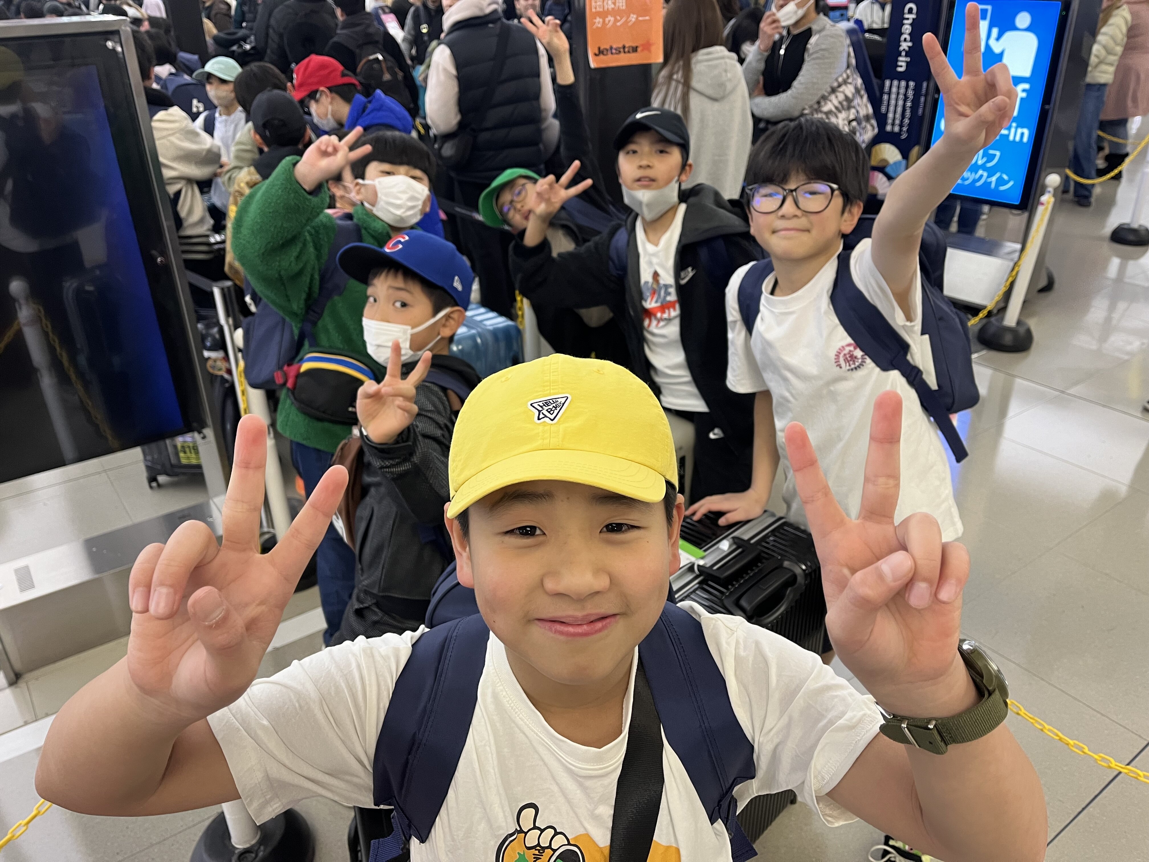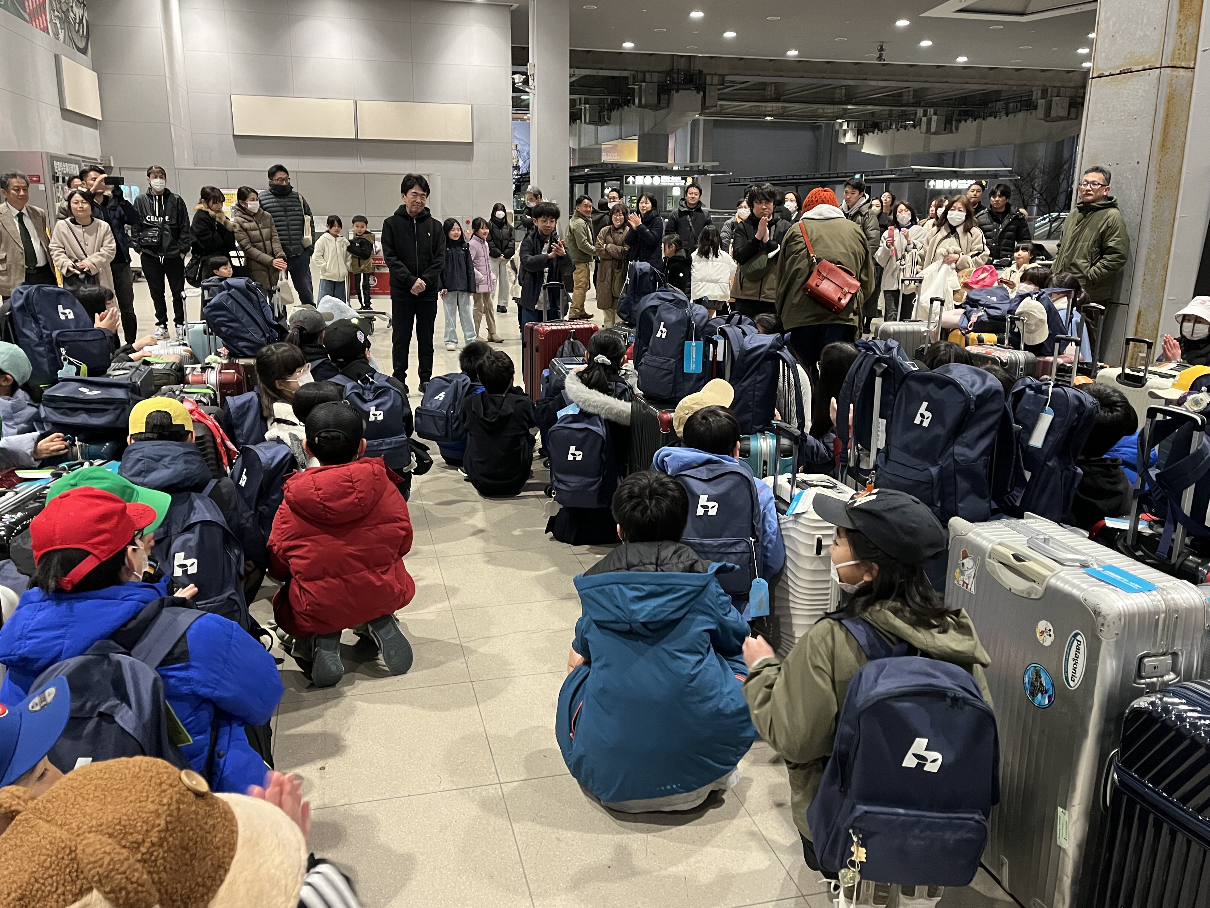 2026/02/085年 いよいよ出発です! 子どもたちが楽しみにしていた修学旅行の日を迎えました。 寒い中、たくさんの保護者の方に見送られ、元気に出発しました。 全員、無事に出国手続きを終えました。 今から、飛行機に搭乗します。 寒い中、お見送りに来ていただきありがとうございます。 いってきます!