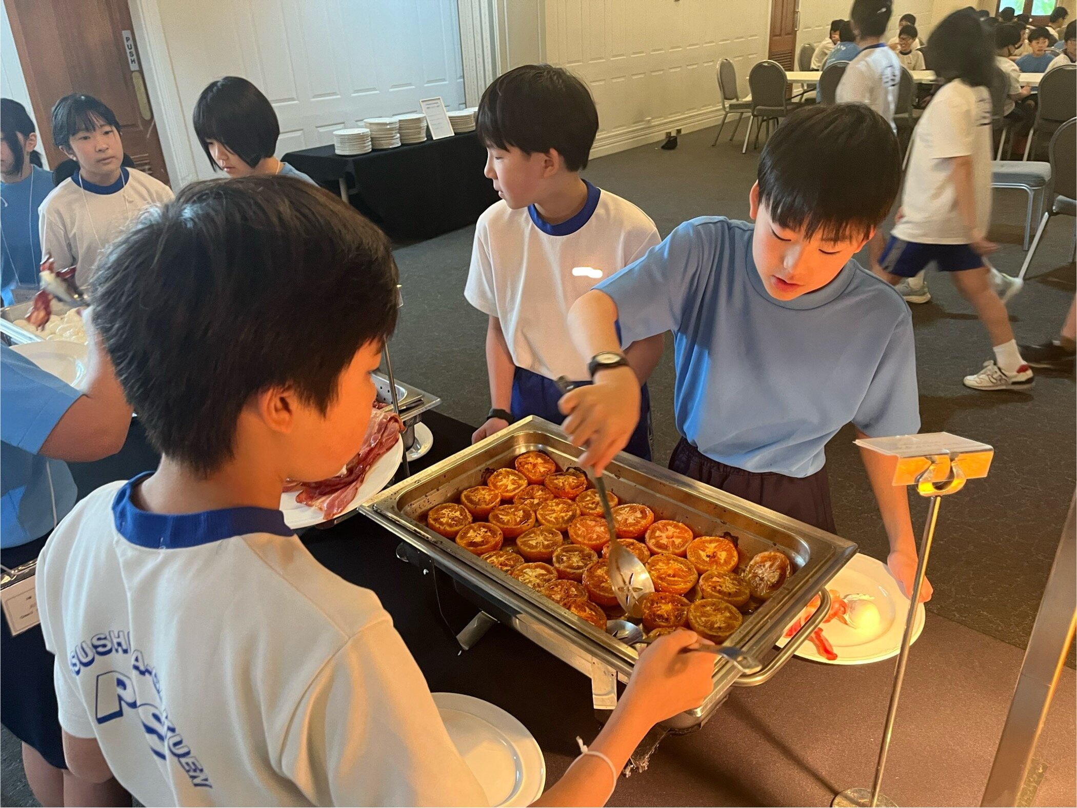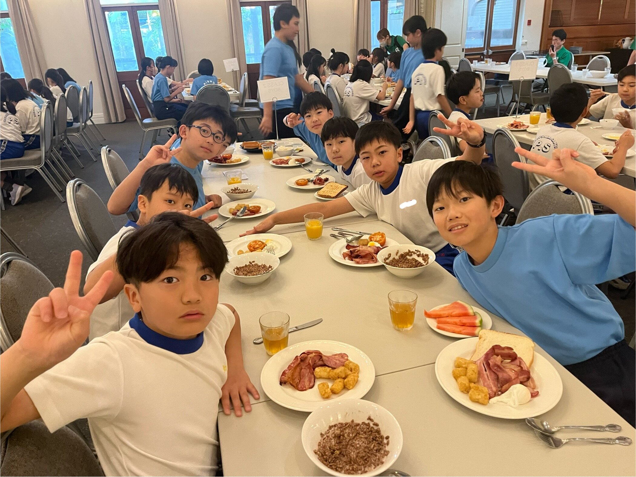 2026/02/115年 4日目スタート! ケアンズでの修学旅行も4日目を迎えました。 今日のケアンズも暑くなりそうです。 ここまで、体調不良者も出ることなく、子どもたちは元気に過ごしています。 朝ごはんを食べて学校交流に備えます。 今から学校交流に向けて出発します。