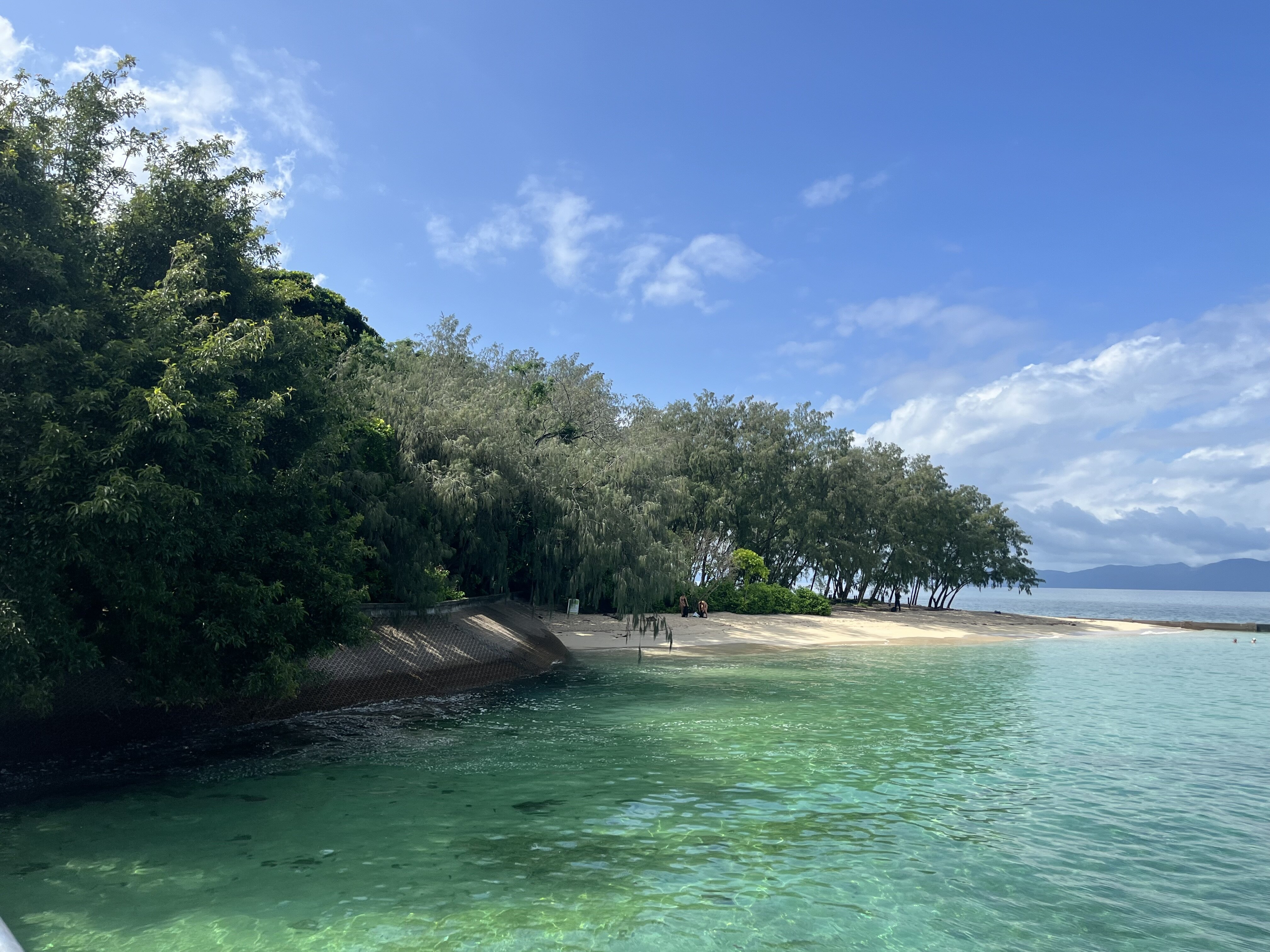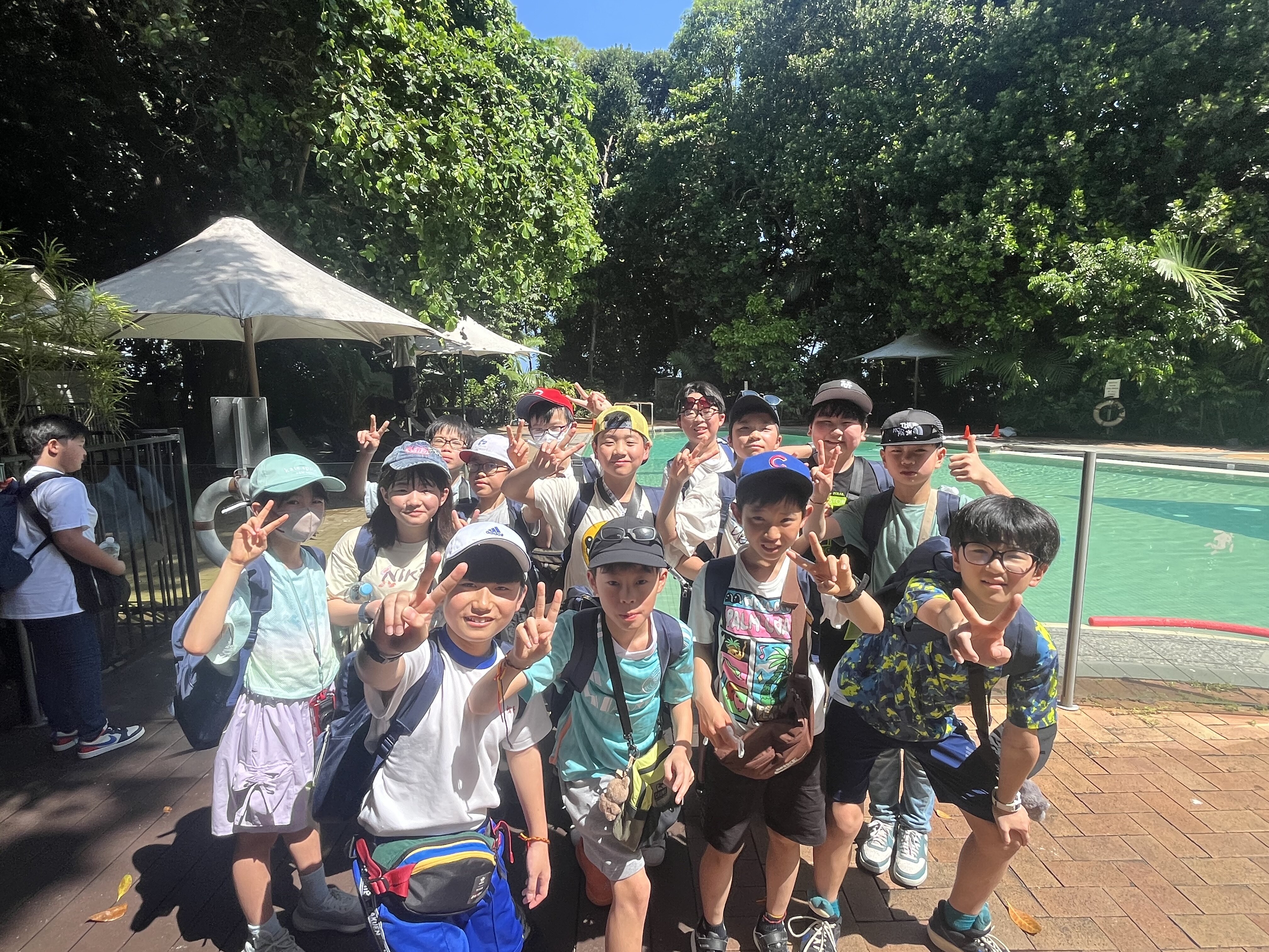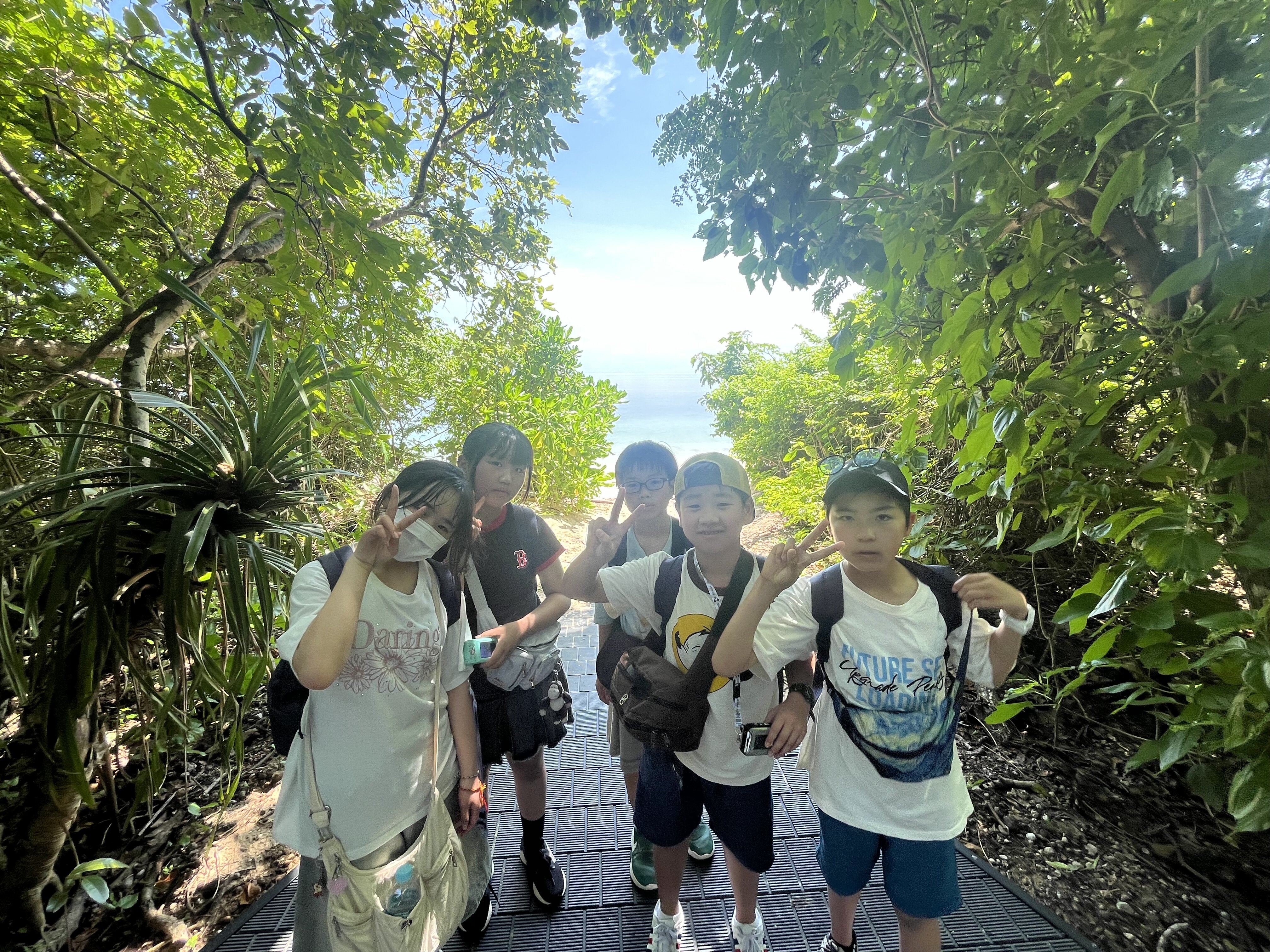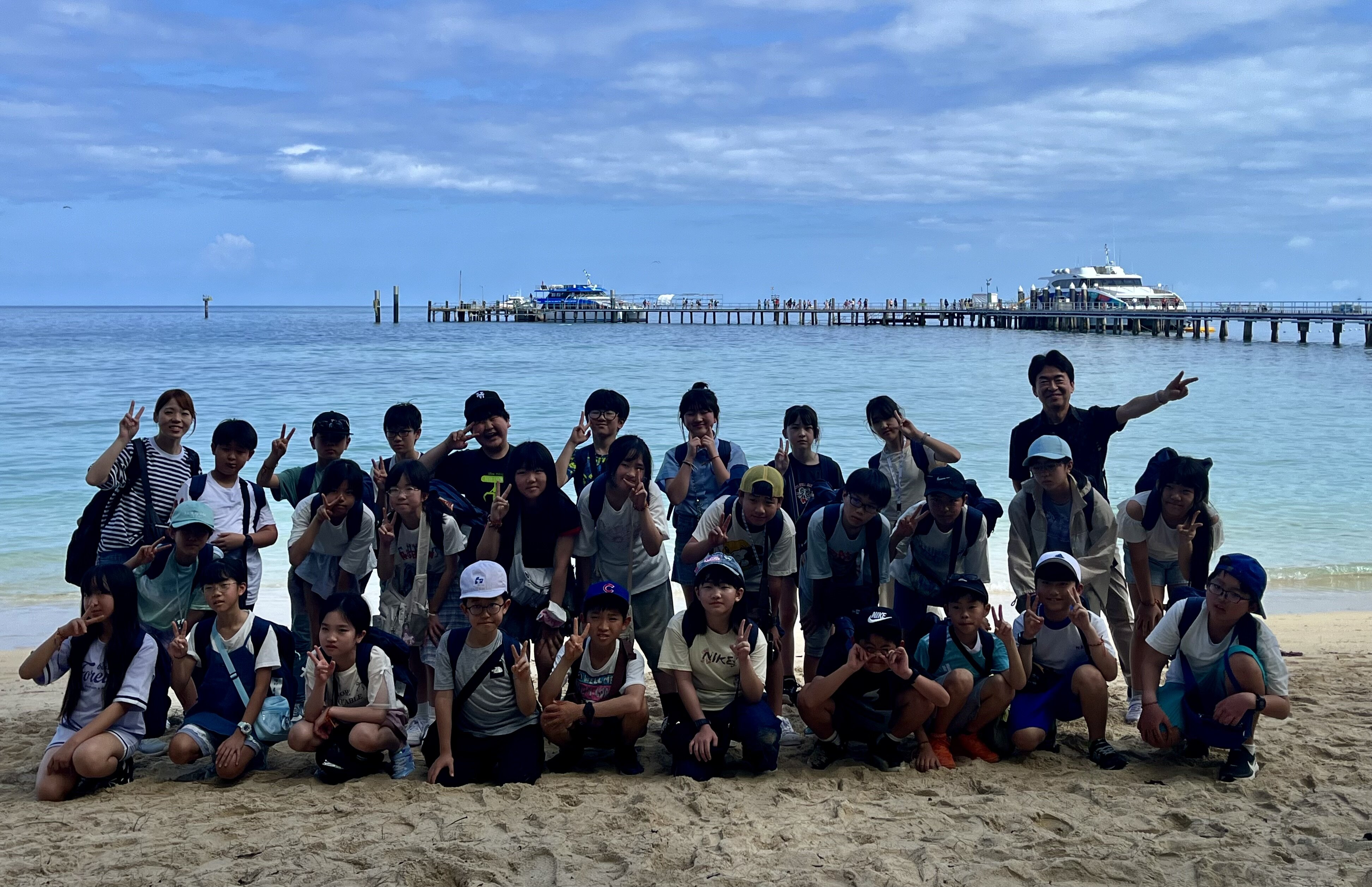 2026/02/125年 グリーン島上陸! いよいよグリーン島が見えてきました。 ケアンズにある世界遺産グレートバリアリーフの中で、サンゴ礁が堆積した砂の上に熱帯雨林が生い茂る唯一の島。 桟橋を渡り、いよいよグリーン島に上陸です。 グリーン島に上陸を果たした5年生の子どもたち。 今からケアンズ市内でお土産タイムに行ってきます。