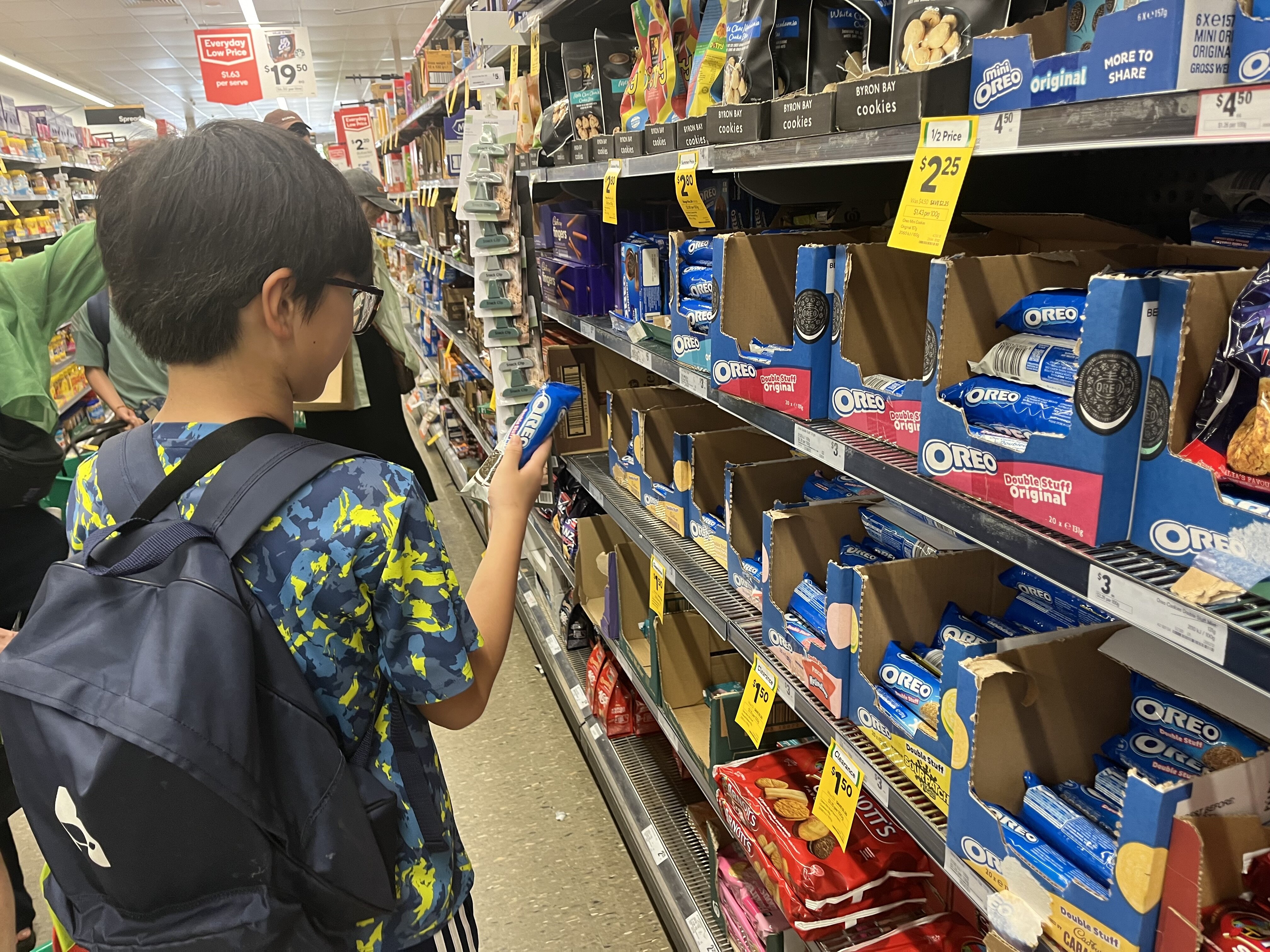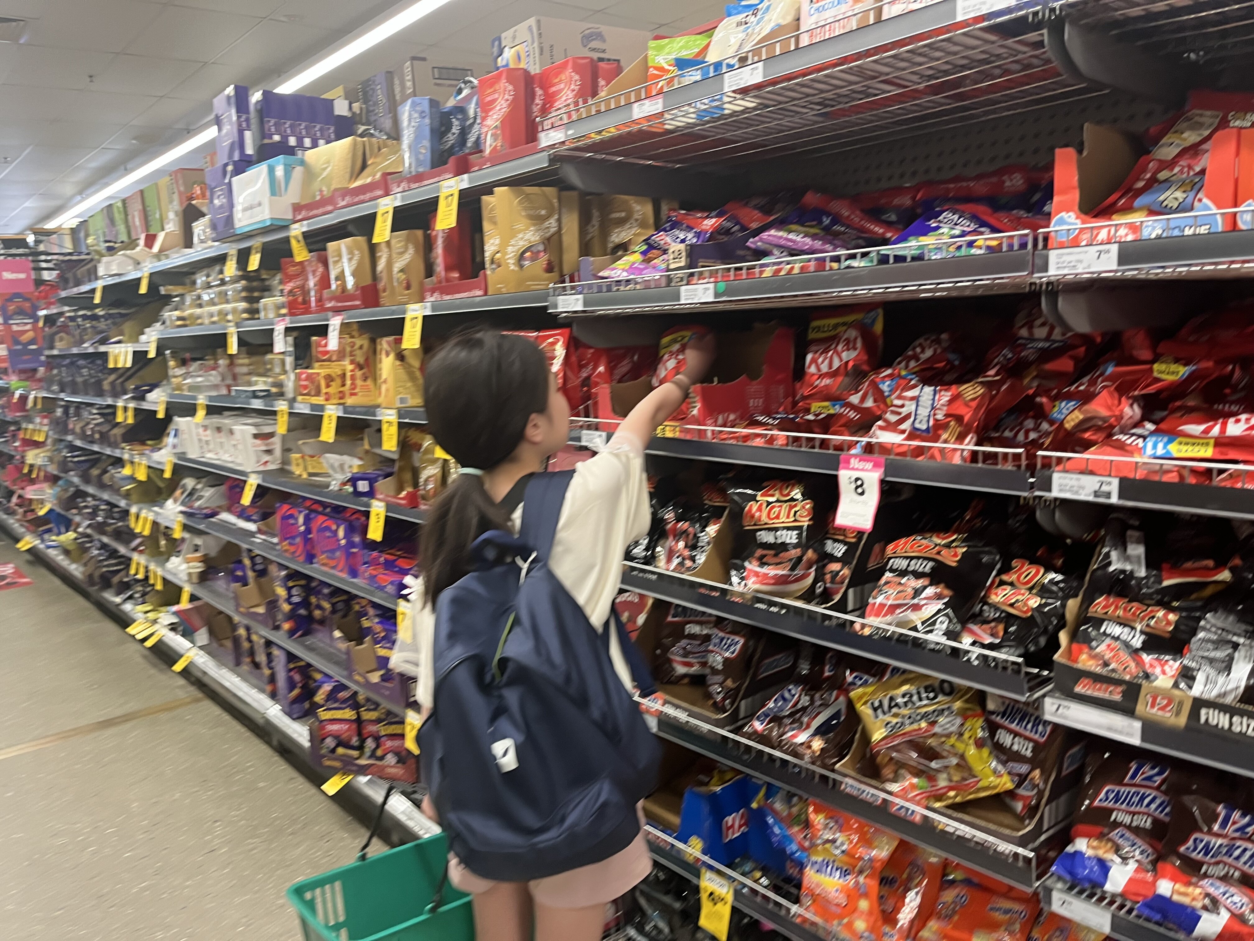 2026/02/135年 ケアンズ市内でお買い物 グリー島から帰ってきた子どもたち、楽しみにしていたお土産タイムに出発です。 現地スーパーに入ると、真っ先にお菓子売り場へ向かいます。 お目当てのものは見つかったかな?