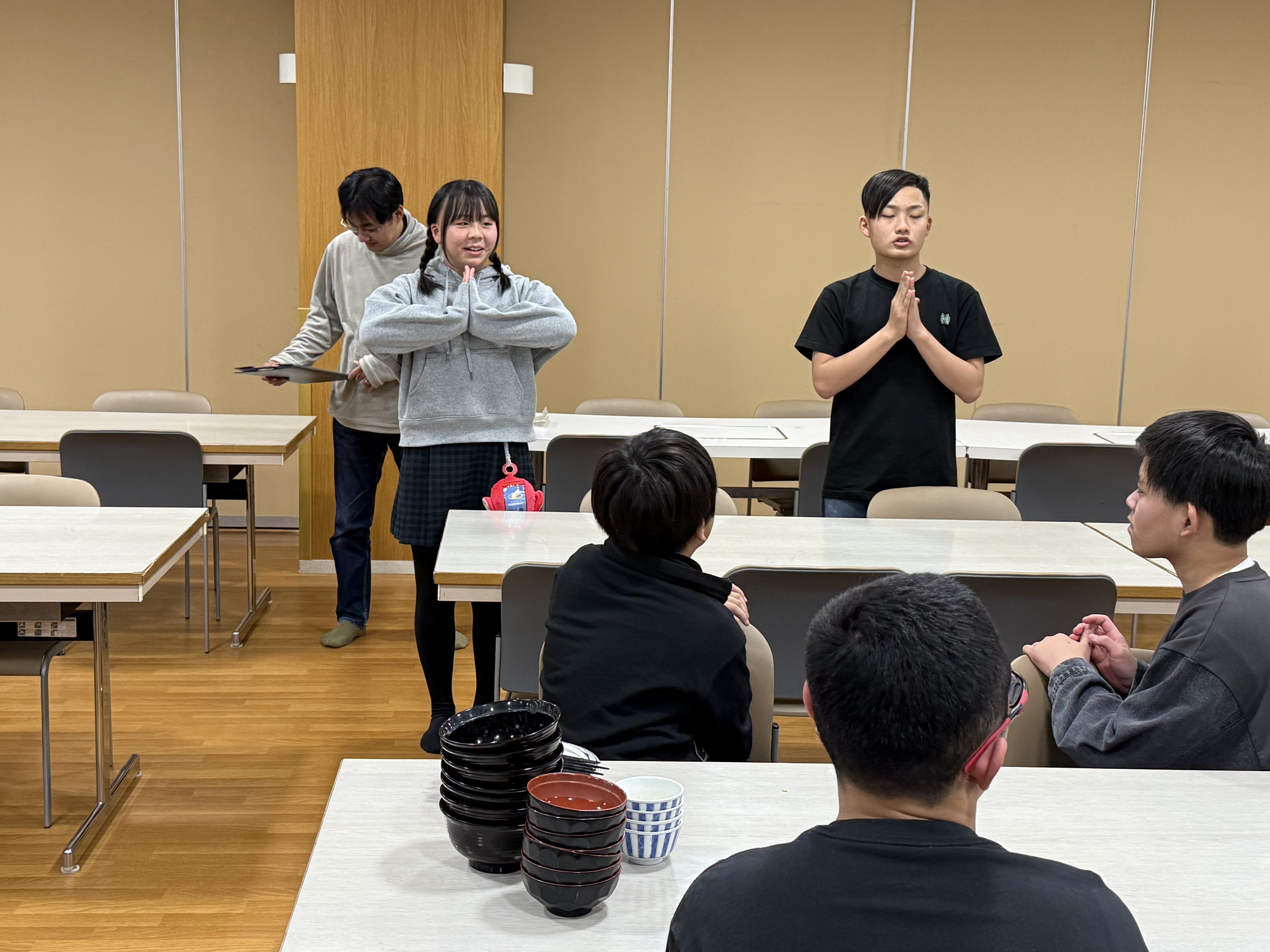 2026/02/186年 入所式&昼食 今日からお世話になるパークホテル白樺館の方に、児童代表者が挨拶をしてくれました。 挨拶が終わると、昼食を食べました。 みんなお腹が空いてたのか、もりもり食べていました。ごちそうさまさまでした。