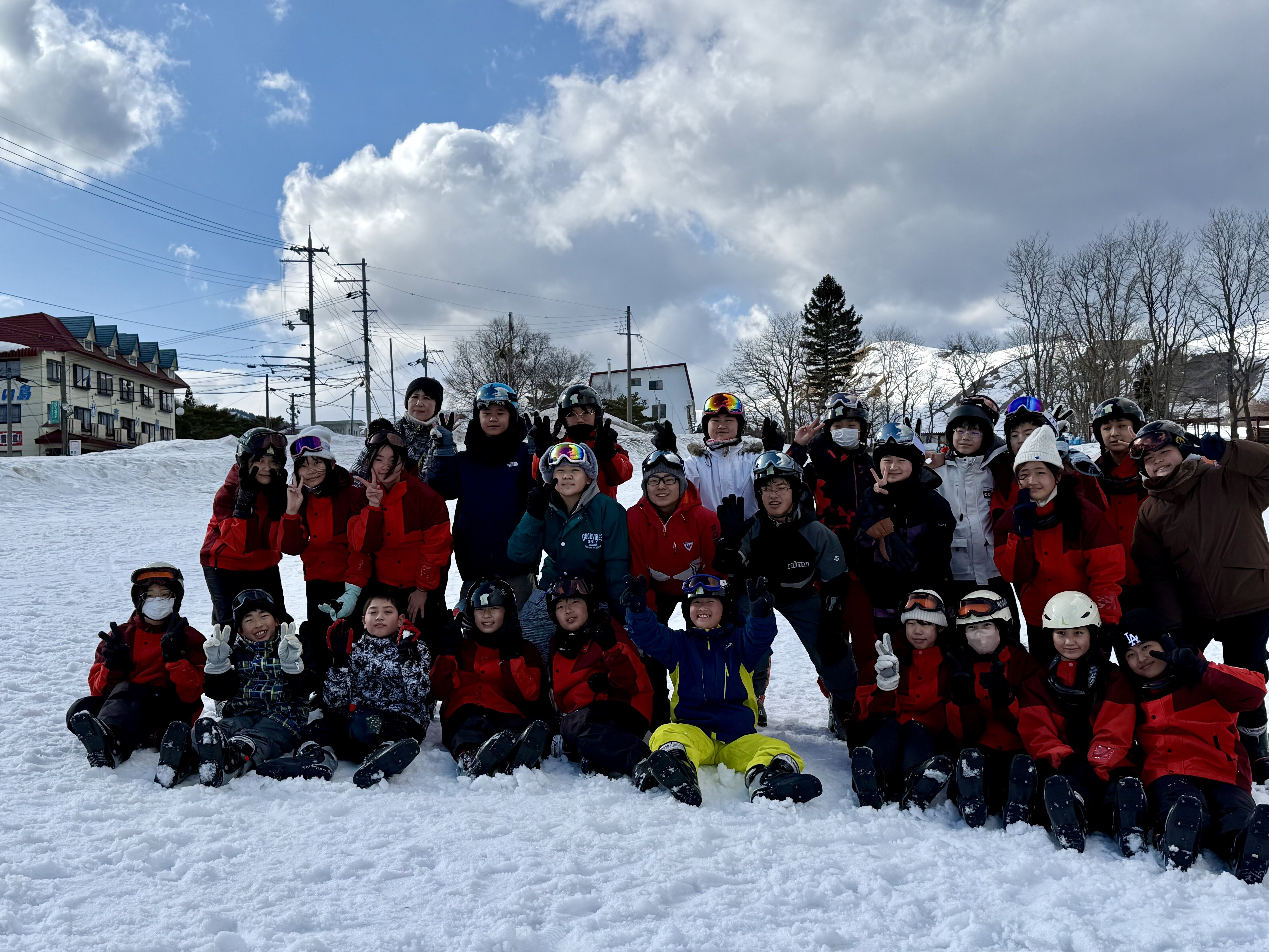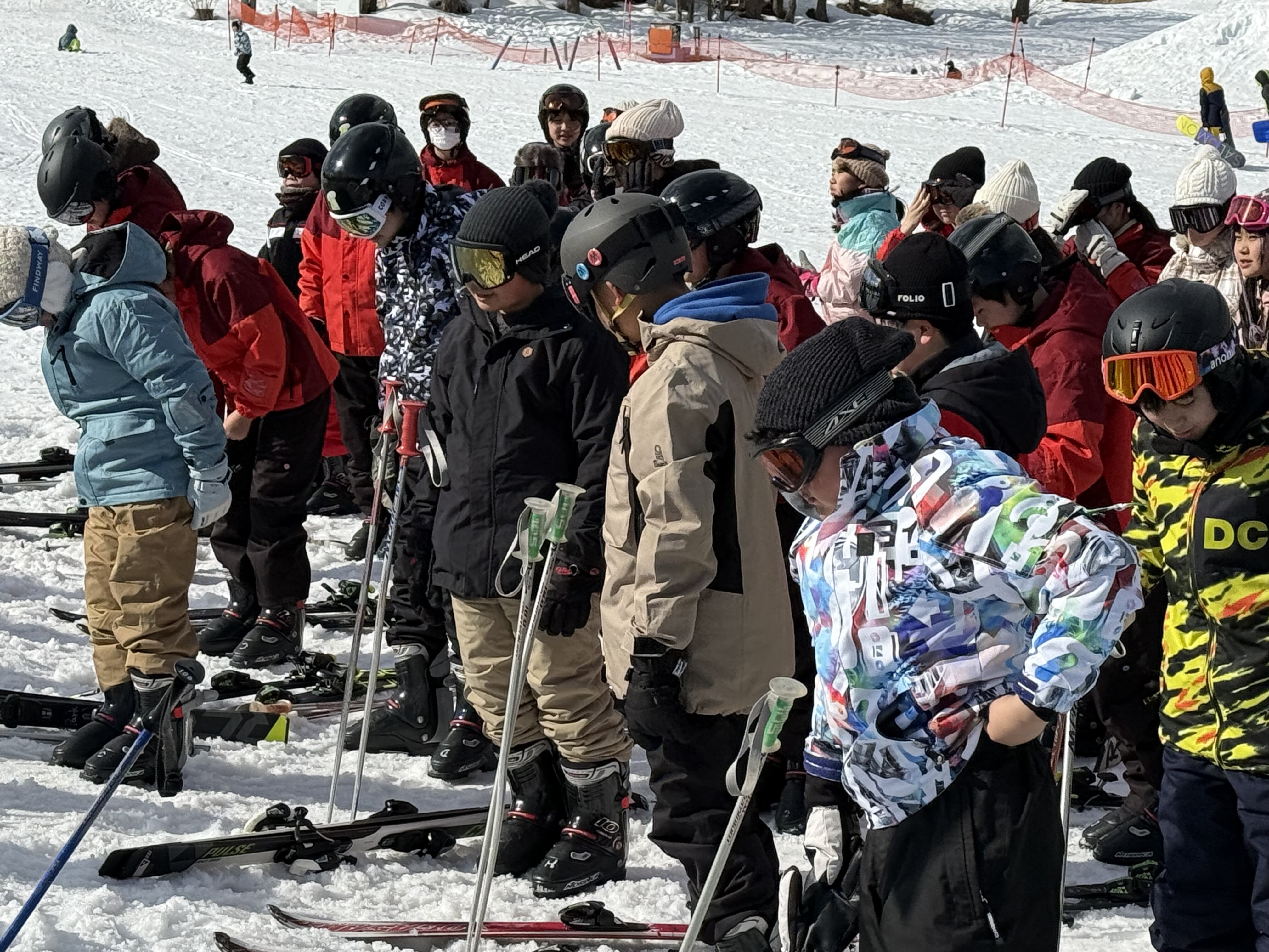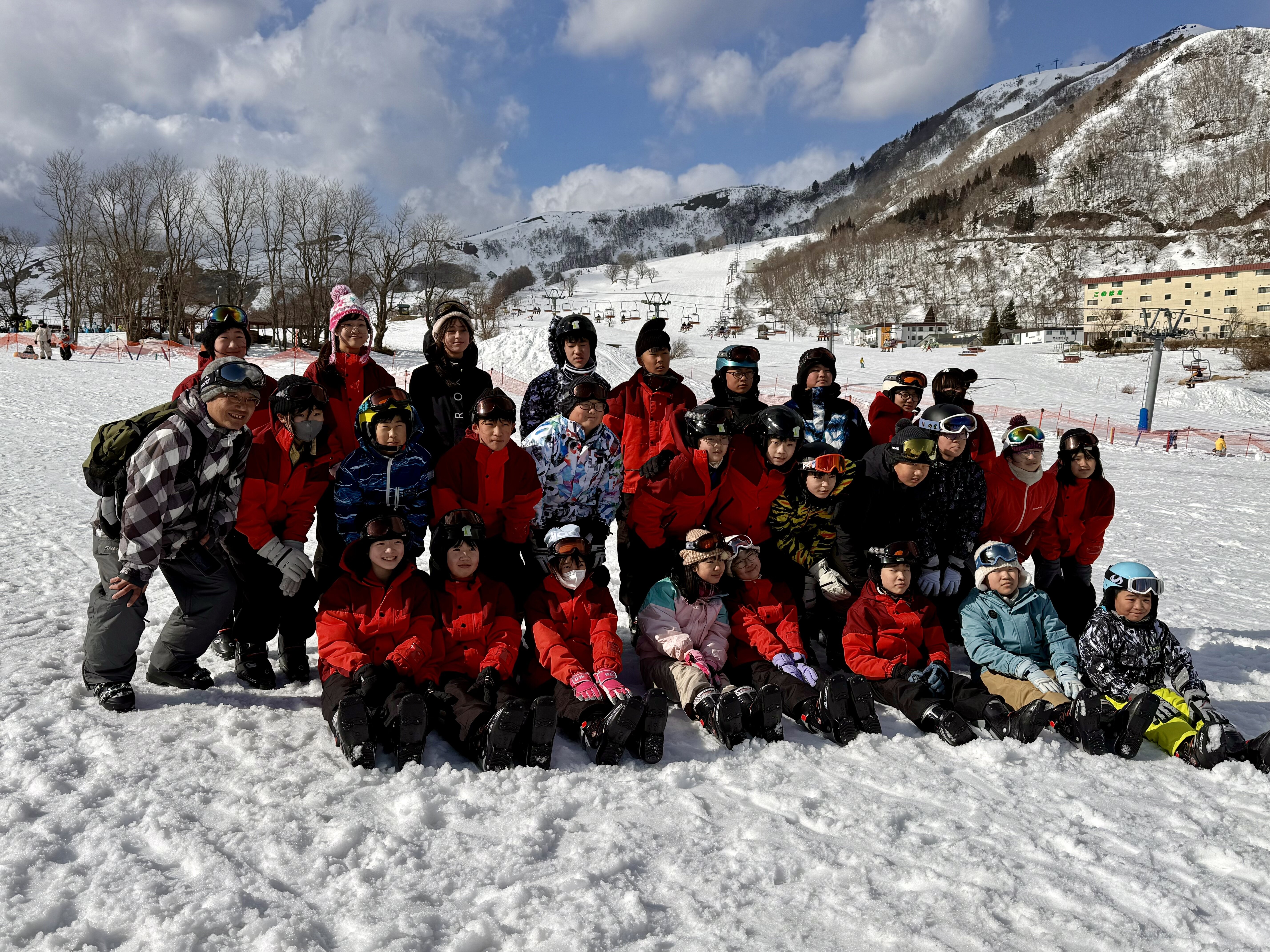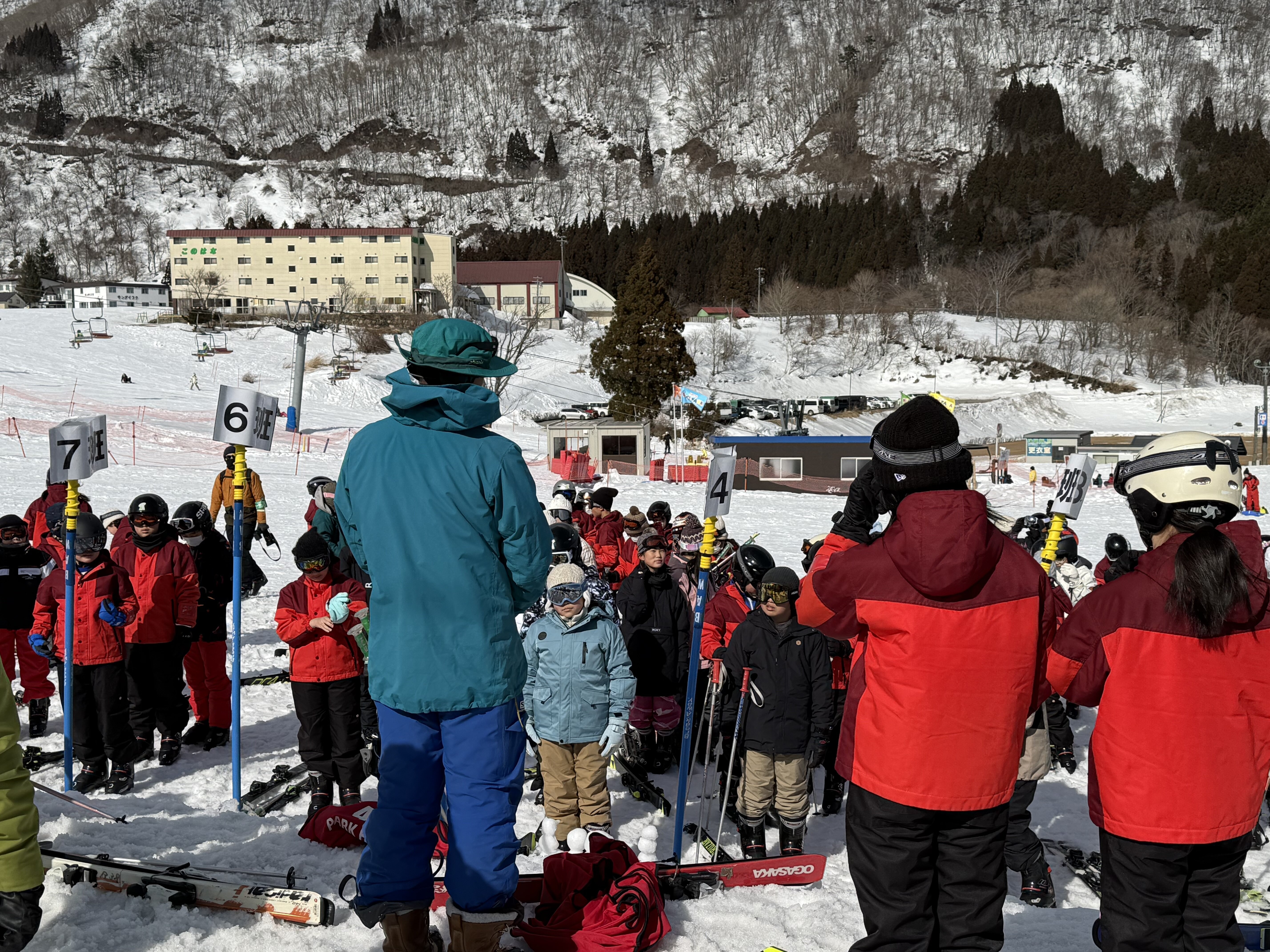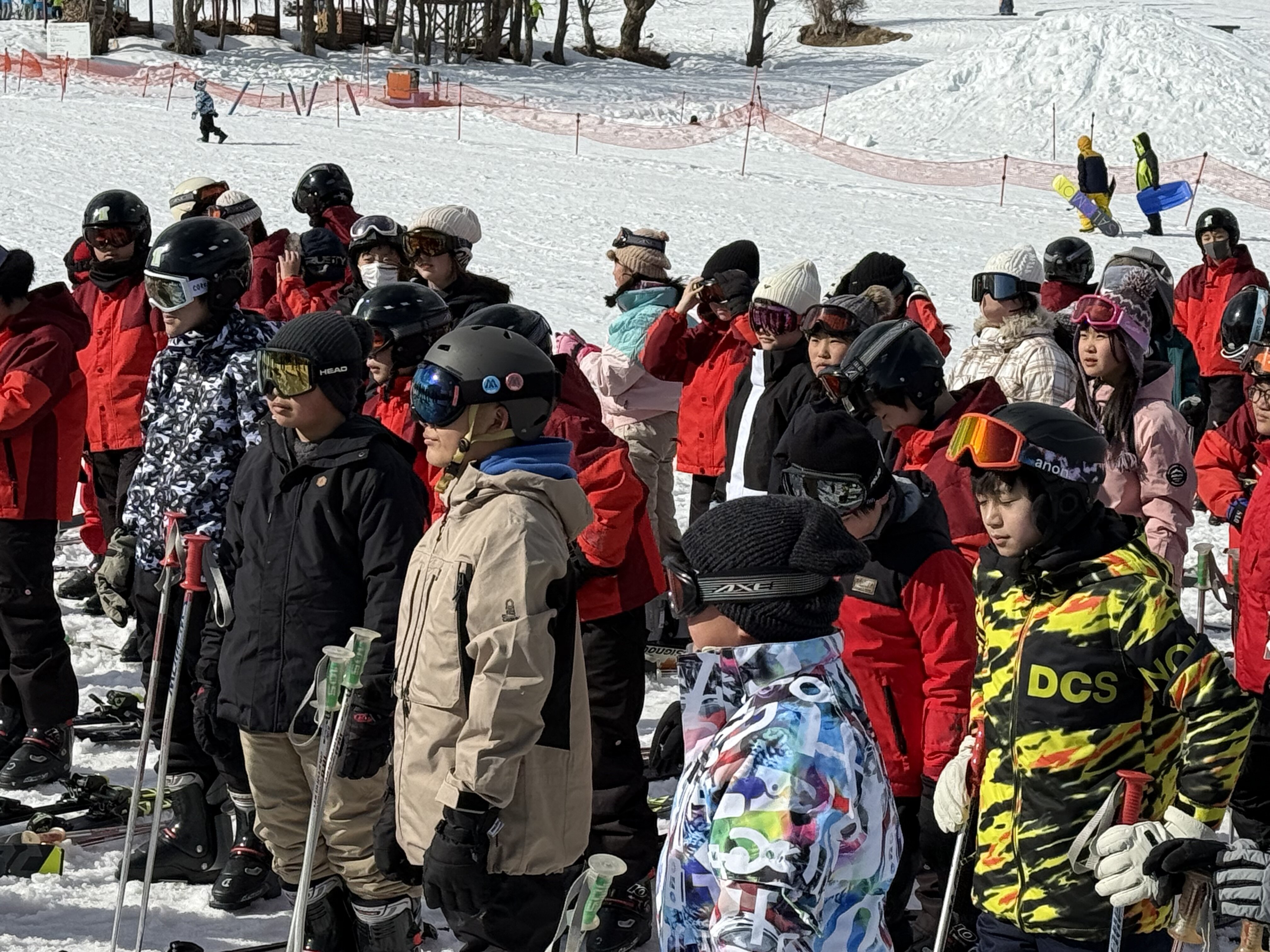 初めての児童たちは、スキー板一枚でまず感覚をつけました。