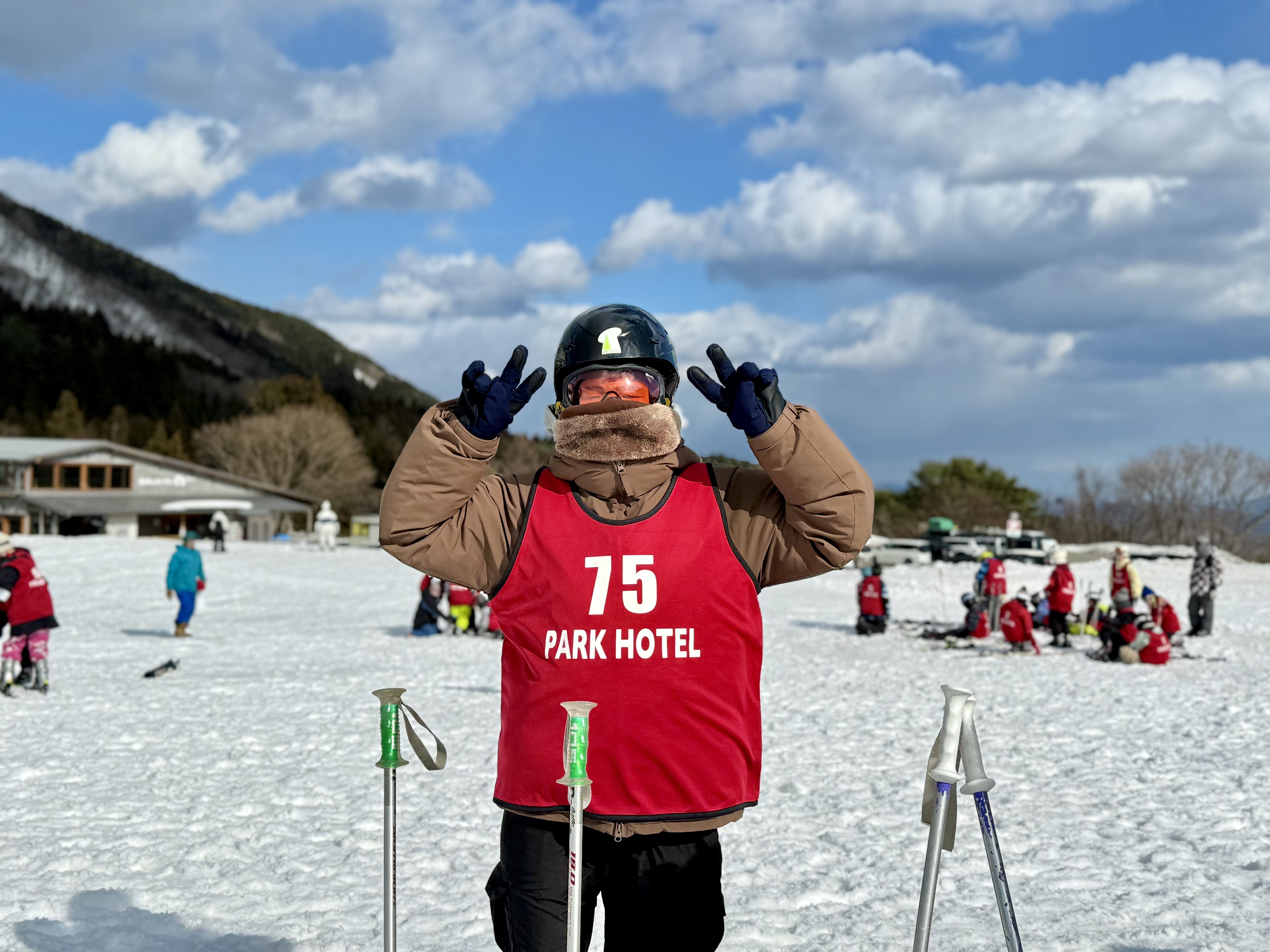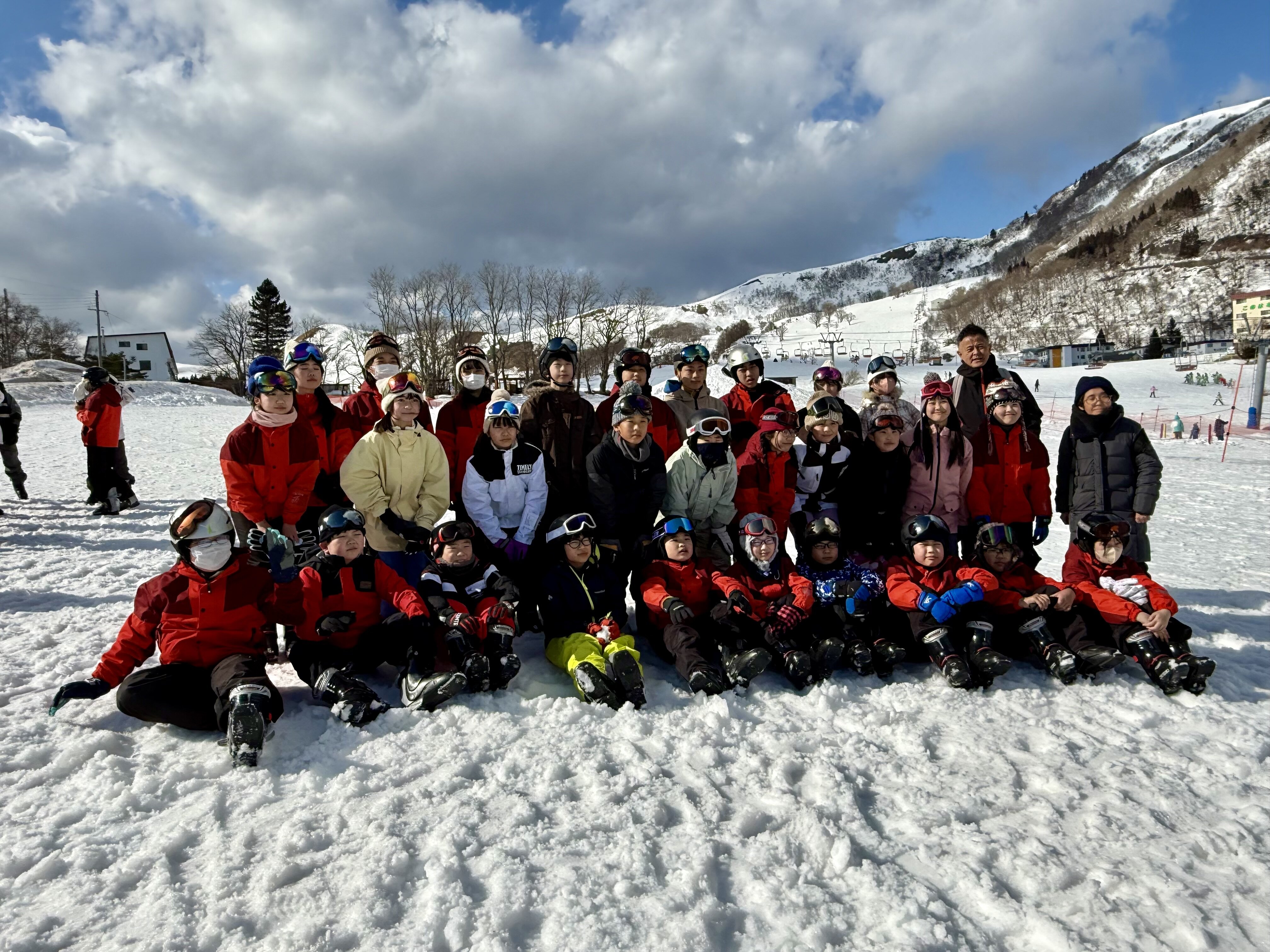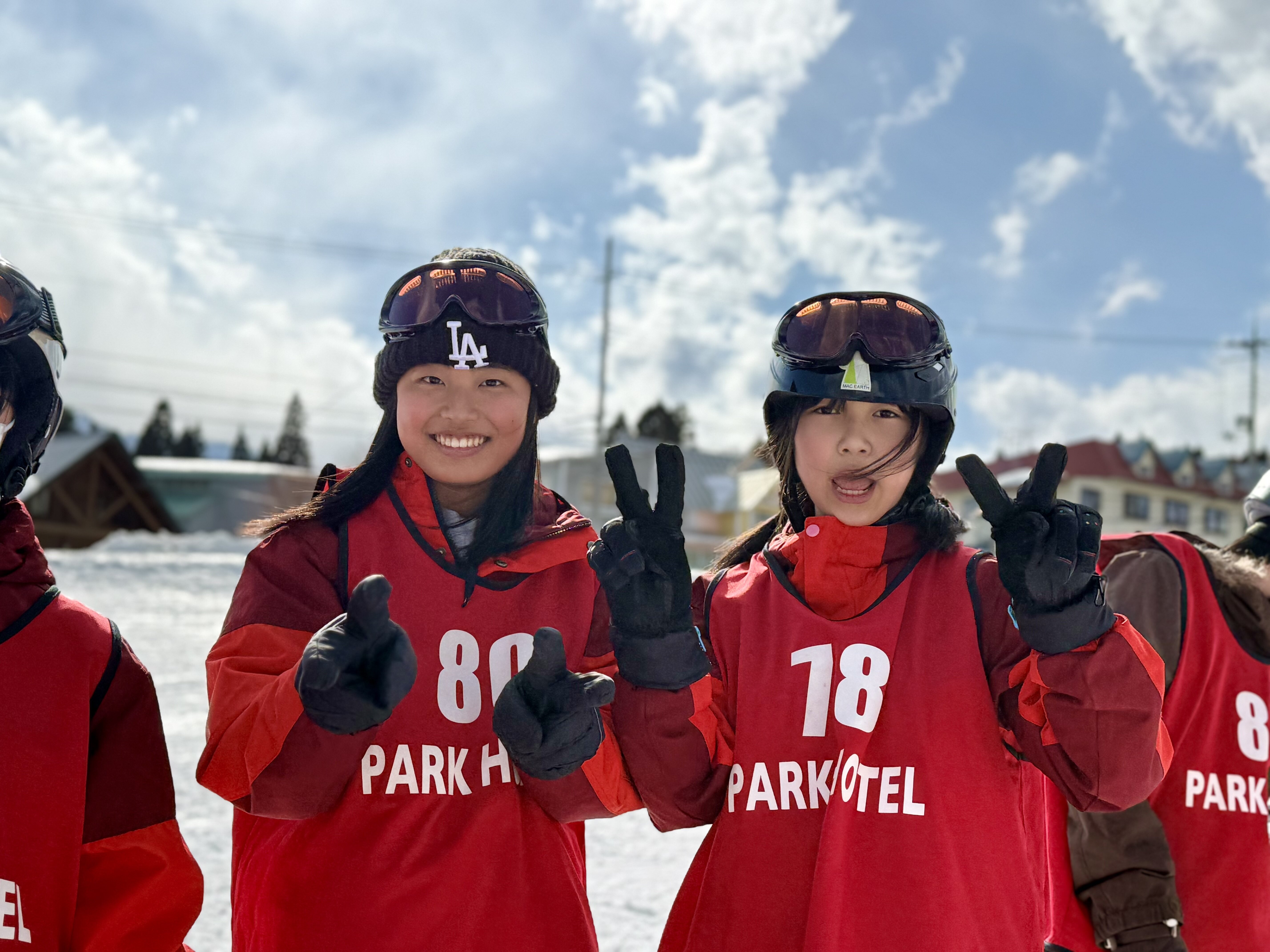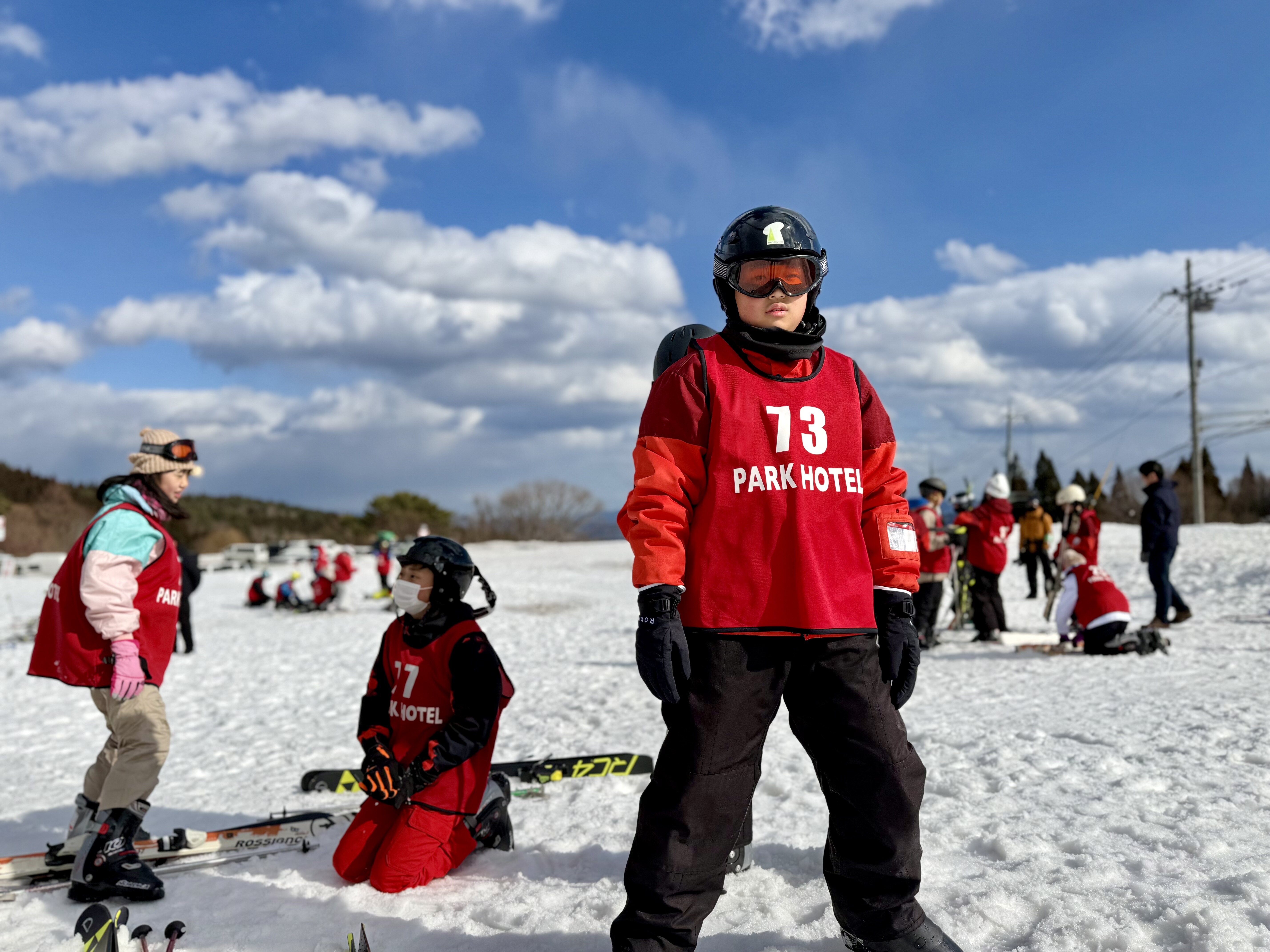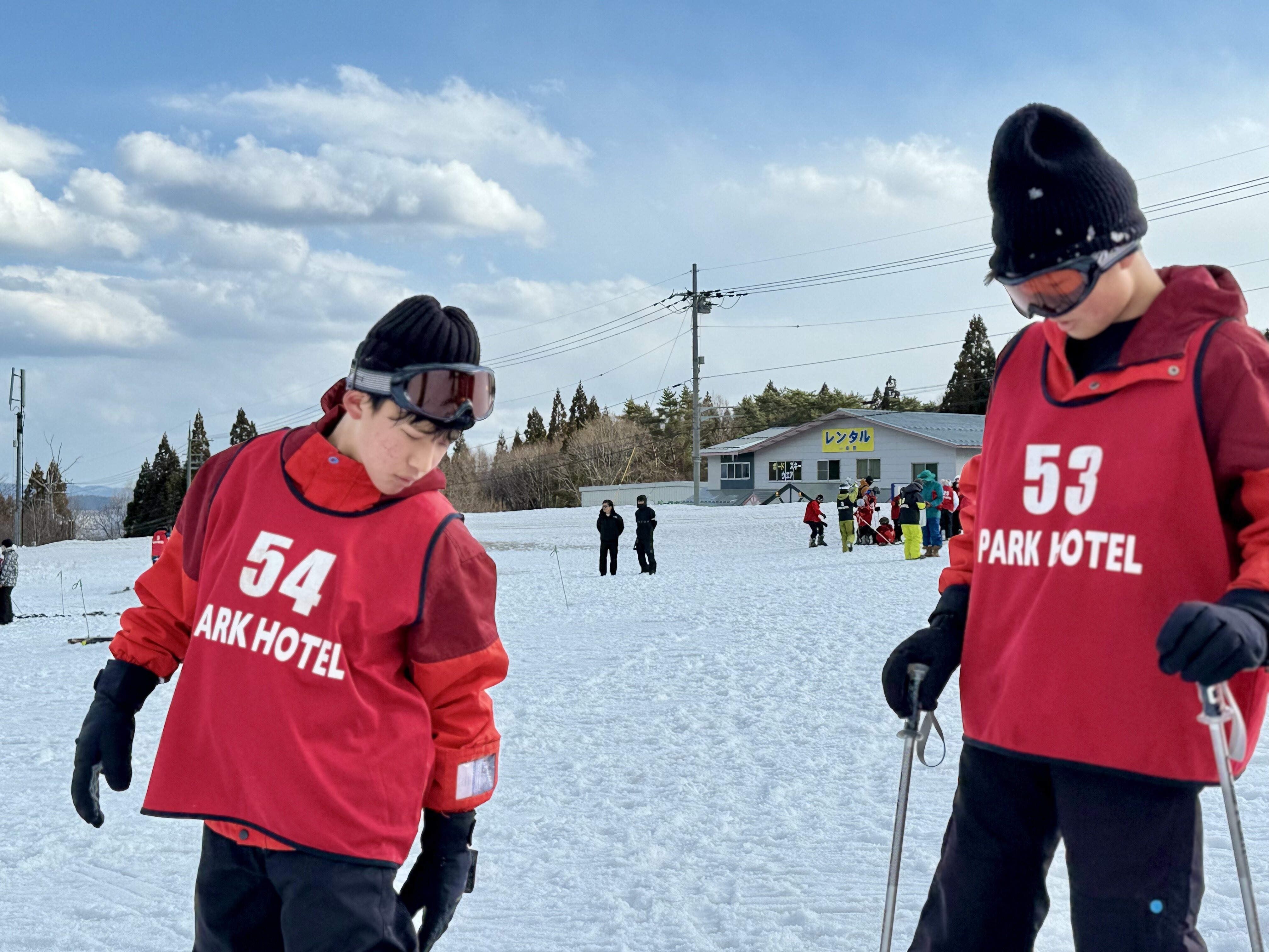 初めての児童たちは、スキー板一枚でまず感覚をつけました。