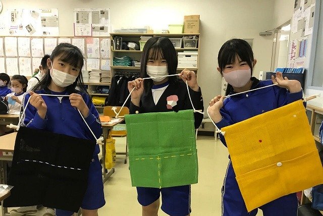家庭科の時間にミシンを使って、ウォールポケットづくりに挑戦しました。