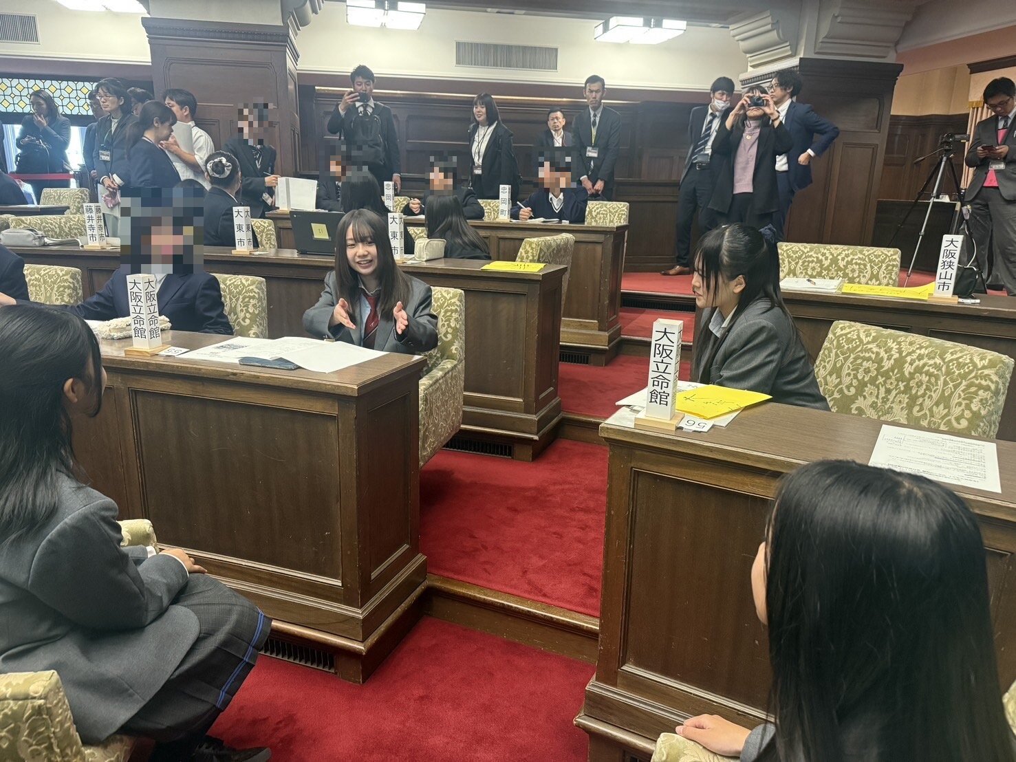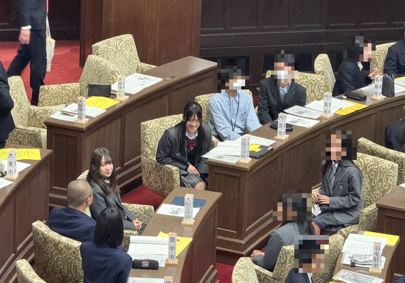 11月8日、本校の中学生徒会役員2名が、大阪府議会議場で開催された「大阪府中学校生徒会サミット」に参加しました。