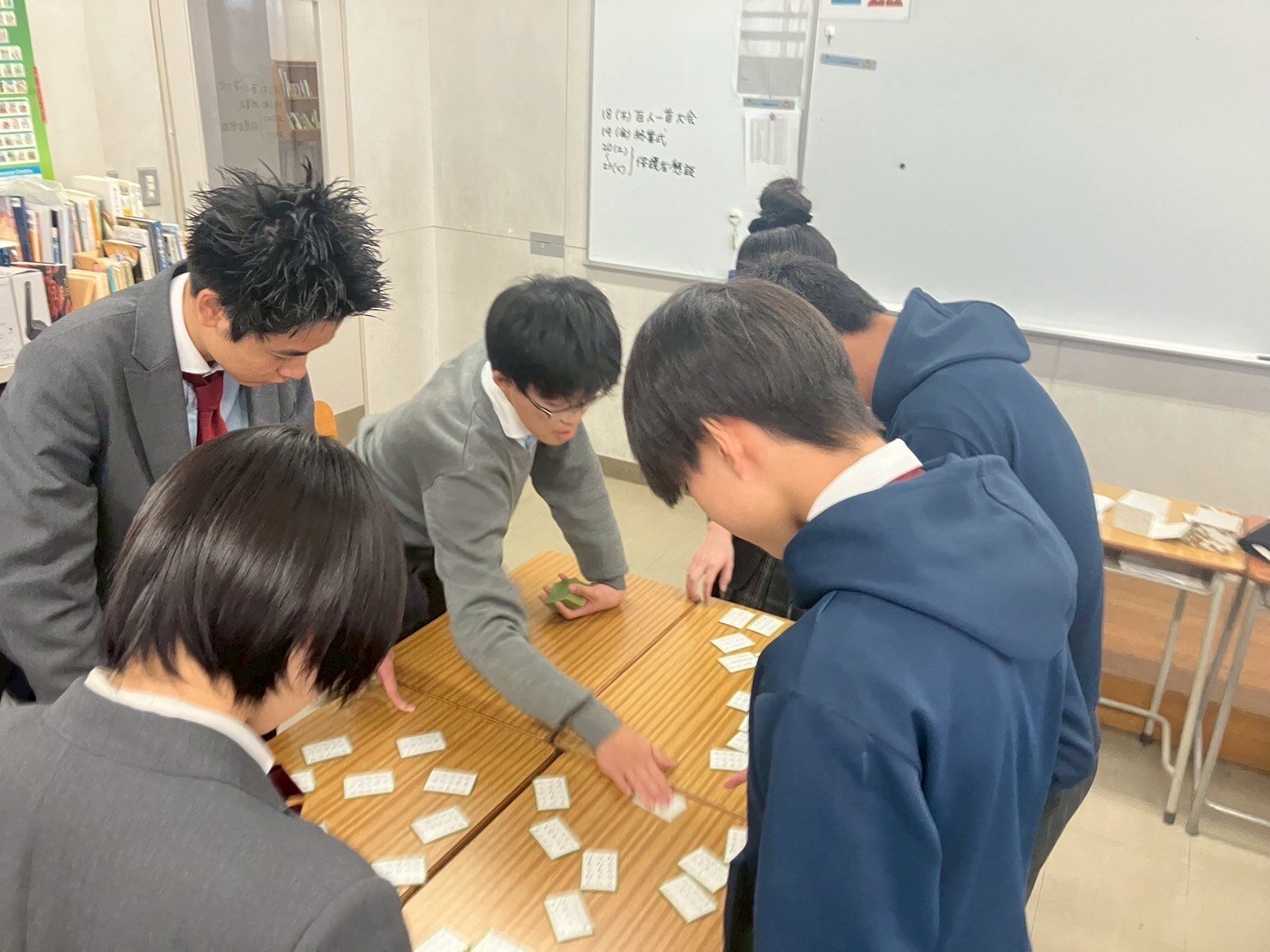 12月18日(木)、恒例の校内百人一首大会が開催されました。予選を勝ち抜いた各クラスの代表者たちが集結し、決勝戦の会場は、クラスメートからの熱い声援に包まれました。静寂と熱気が入り混じる中、ハイレベルな一進一退の攻防が繰り広げられた結果、以下の皆さんが入賞を果たしました。・優勝:中原理世さん(中2-7)・準優勝:辻本彩里さん(中3-5)・第3位:古川千乃さん(中2-4)