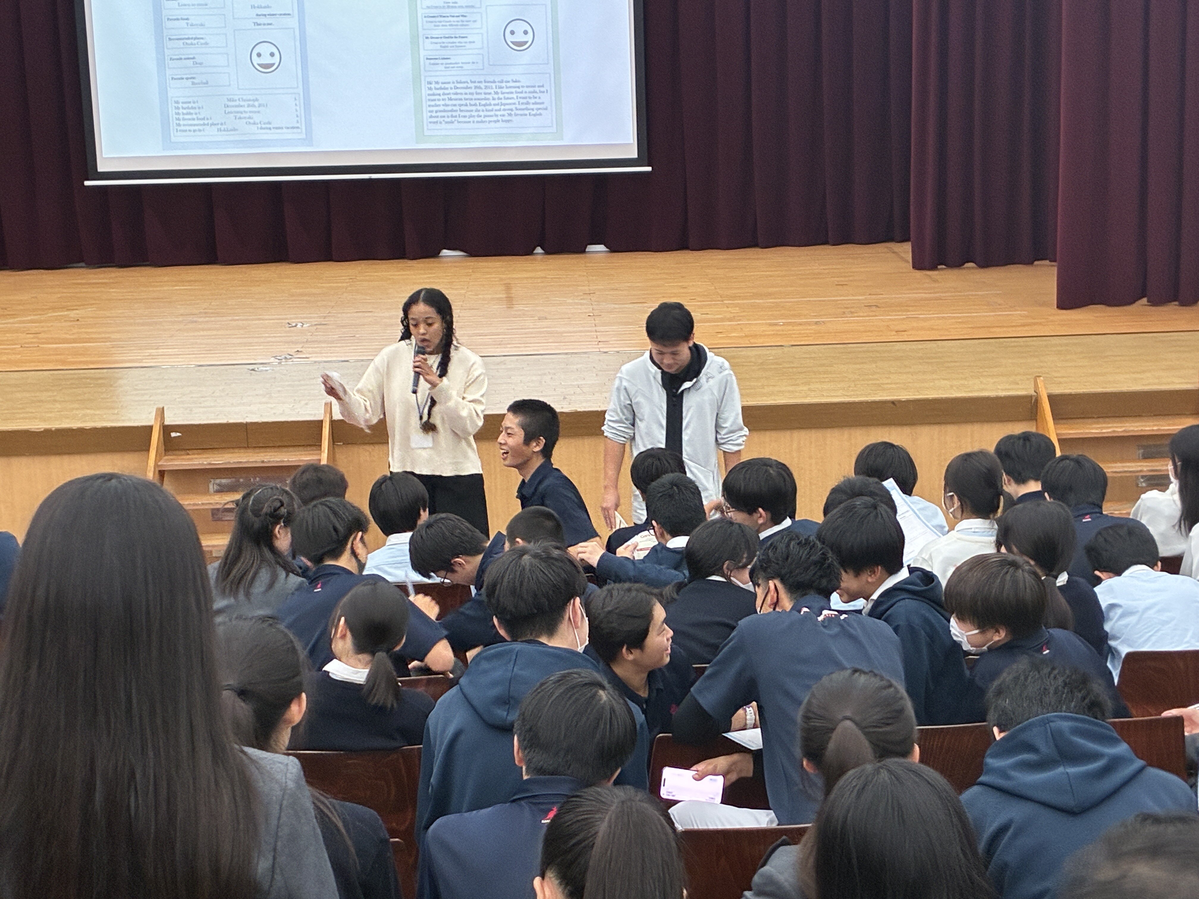 いよいよ2週間後にEnglish Immersion Camp 2が行われます。 その事前学習として、"All about me"という自己紹介シートを作成し、当日講師の先生方とスムーズにやり取りができるように準備をしました。 手を挙げて質問する人、講師の先生とのやりとりを舞台上で行ったりする人もおり、みな意欲的に取り組んでいました。