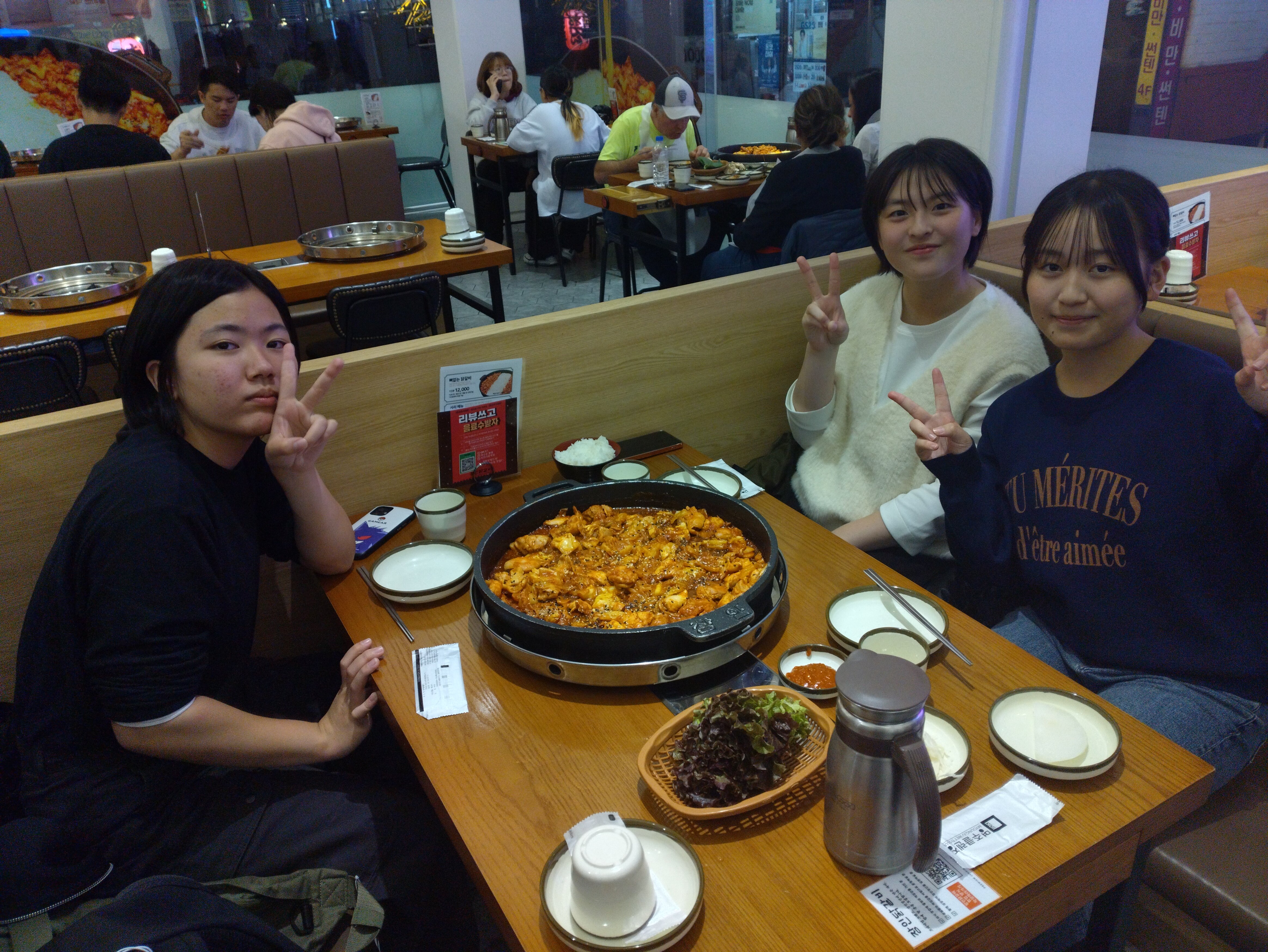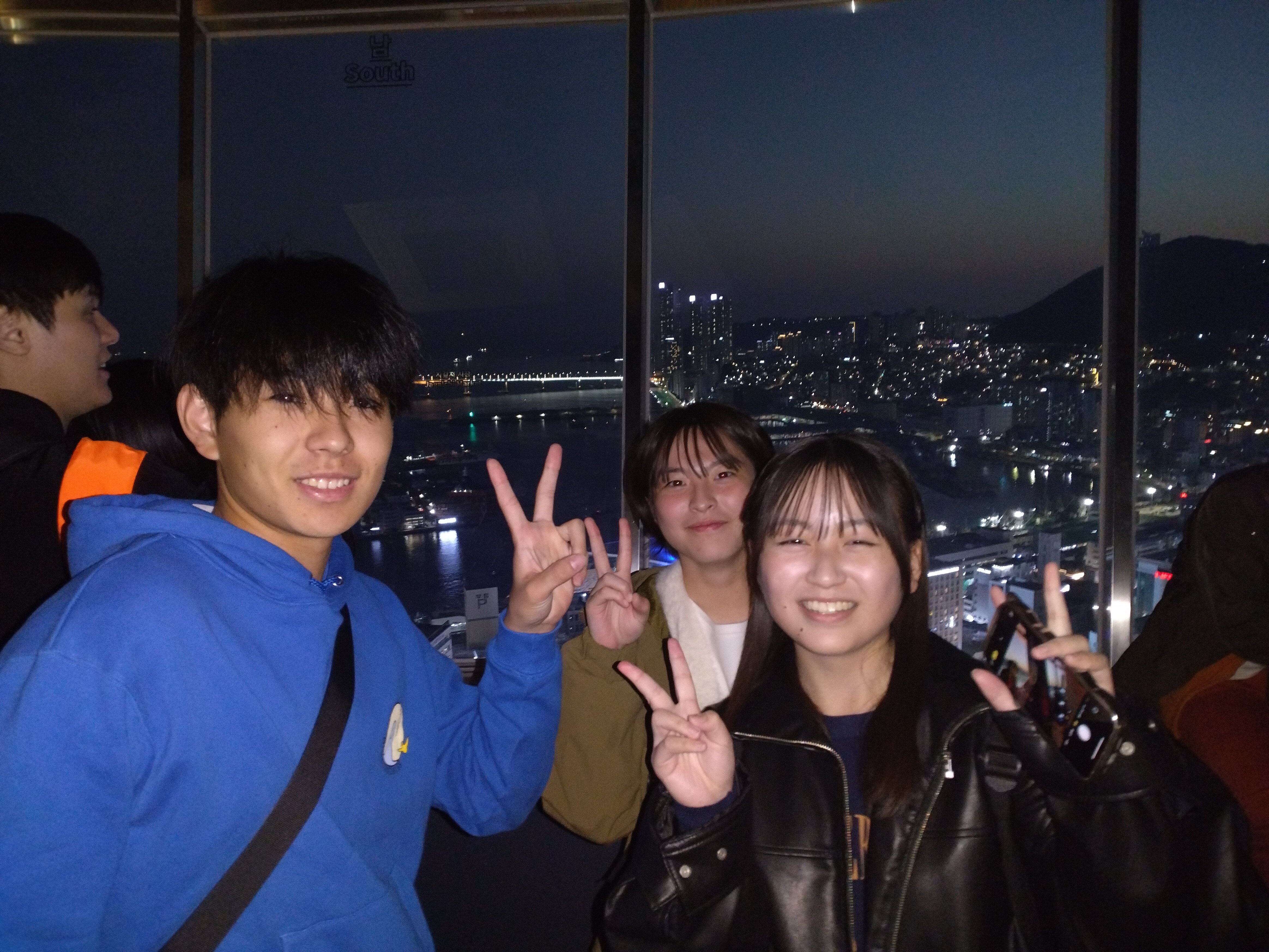 本日午前中はホームビジットです。4班に分かれ韓国のご家庭を訪れました。 午後は甘川文化村を訪れました。 ロッテマートでショッピング、その後釜山タワーから港や港町の夜景を堪能しました。 夕食はタッカルビのお店に行きました。一番マイルドなものでしたが、本場の辛さは本物でした。 明日も自主研修で訪ねるプサンの昼とは少し違う町並眺めながら駐車場に向かい,バスででホテルまで帰りました。